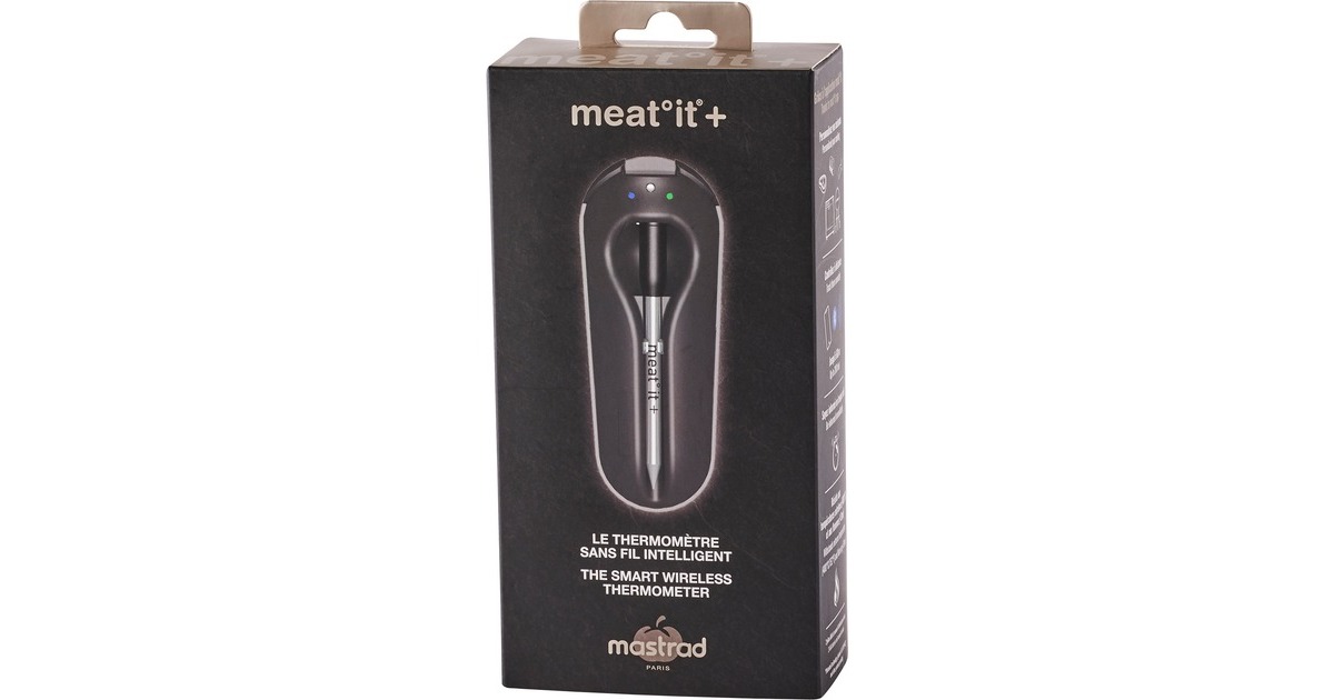 Der Meat it Plus von Mastrad ist ein bluetooth fähiges, kabelloses Fleischthermometer mit dem sich Grillgerichte aus der Ferne vollständig kabellos überwachen lassen. Dank der patentierten Technologie misst Meat it die Innentemperatur, die App berechnet Gardauer und Wärmestärke und warnt, wenn das Fleisch verkocht, verbrennt oder wenn die Heizquelle abkühlt. Die Sonde widersteht es extremen Temperaturen von -30°C bis 300°C und bis zu 3 min resistent gegen direkte Flammen (bis zu 3 min - 600°C). Es hat einen Temperaturbereich von 0°C bis 100°C, der perfekt Für den Gebrauch in Smokern ist. Mit dem Mastrad Meat it Plus kann jedes Fleisch bei der perfekten Temperatur gegart werden. Zudem lassen sich bis zu 4 Sonden gleichzeitig anschließen. Die Sonde verfügt über eine integrierten Akku mit bis zu 24 Stunden Laufzeit.