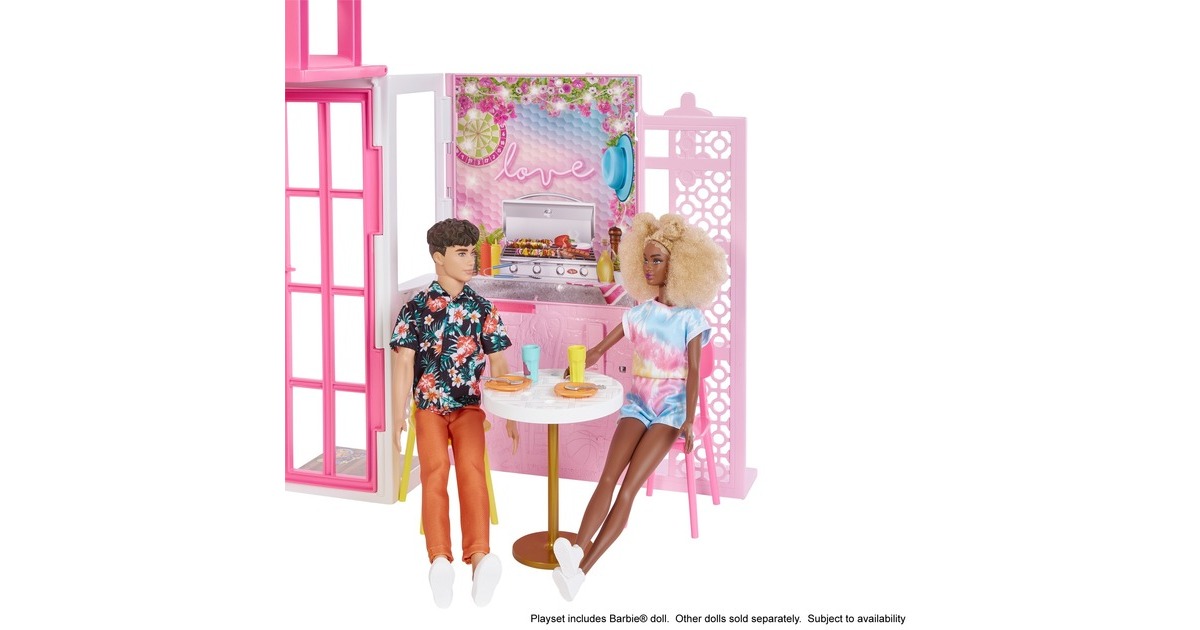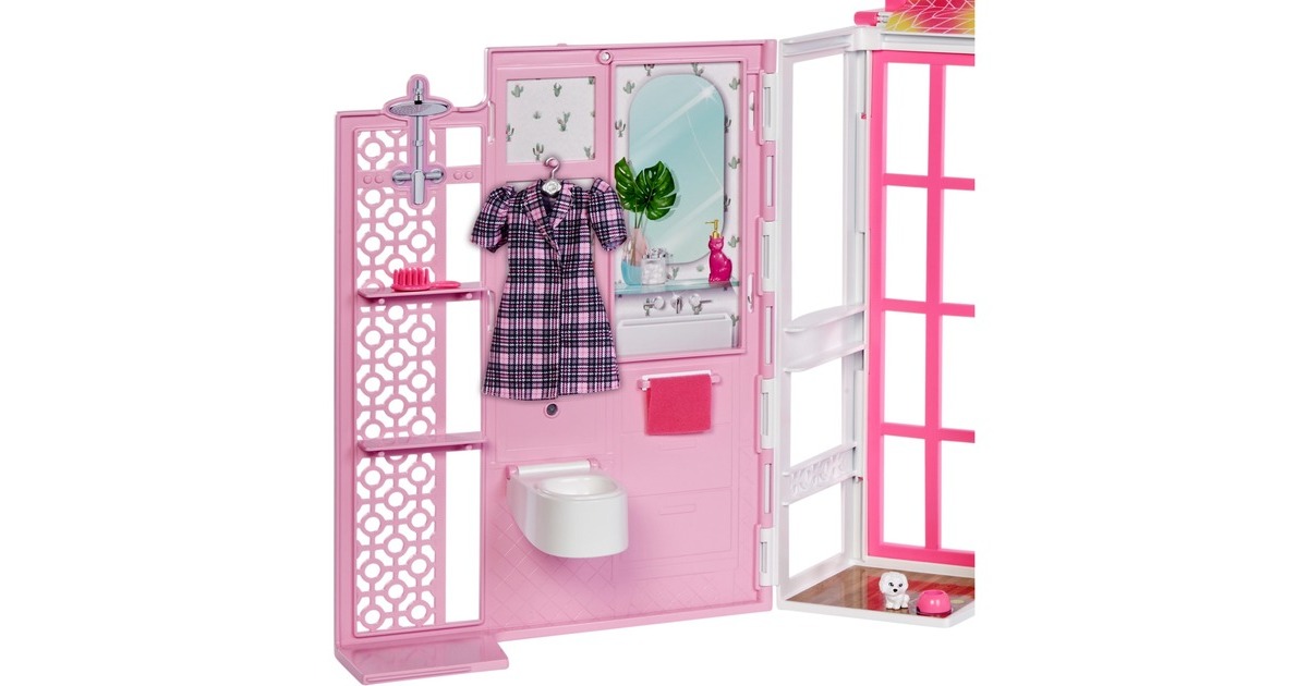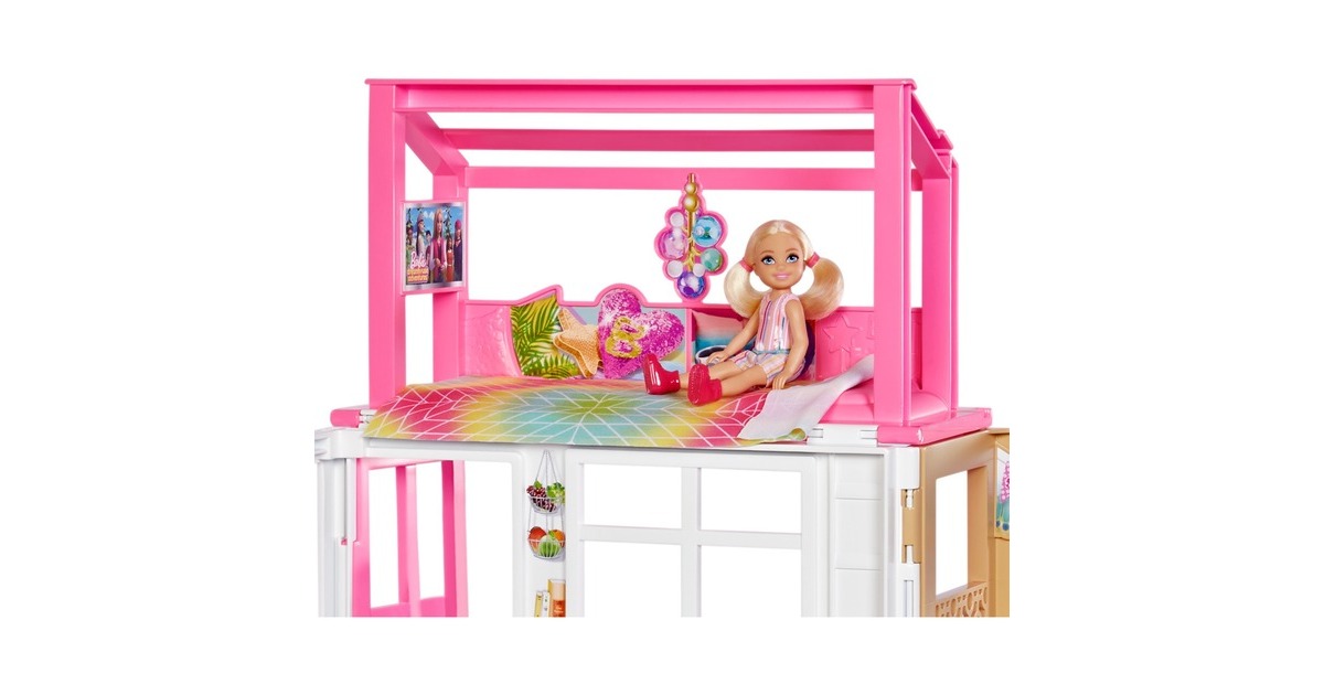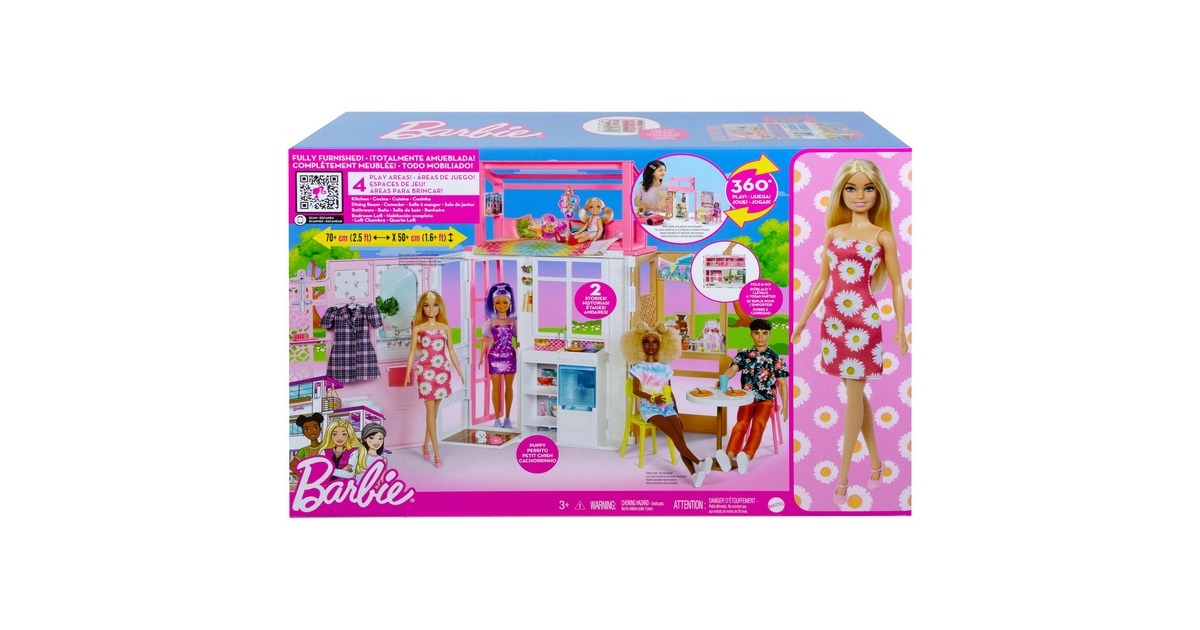 Mit diesem Barbie-Puppenhaus mit Rundum-Spielspaß, zwei Etagen, vier Spielbereichen und viel Zubehör sind der Fantasie keine Grenzen gesetzt! Dieses voll möblierte Barbie-Haus besticht mit modernem Design im Barbie-Style und umfasst alles, was Kinder brauchen, um unendlich viel Spaß zu haben, einschließlich einer Barbie-Puppe und ihrem Hündchen! Heiße Freunde an der Haustür willkommen, habe Spaß beim Kochen in der Küche und serviere das Essen am Esstisch für zwei Personen. Nach einem Tag voller Spiel und Spaß kann sich Barbie in ihrem gemütlichen Bett schlafen legen. Die spaßige Einrichtung und das Zubehör versprechen unzählige Spielmöglichkeiten, und nach dem Spielen kann das ganze Set einfach zusammengeklappt werden, um es zu reinigen oder mitzunehmen. Mit so vielen Spielmöglichkeiten ist dieses Barbie-Haus ein großartiges Geschenk für Kinder von 3 bis 7 Jahren.Art.-Nr.: 1806320