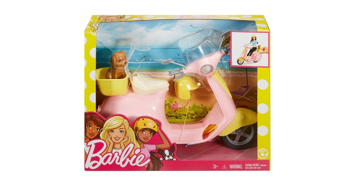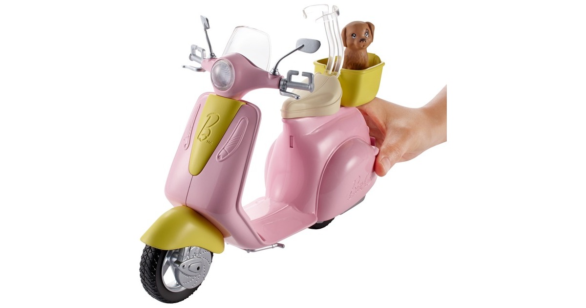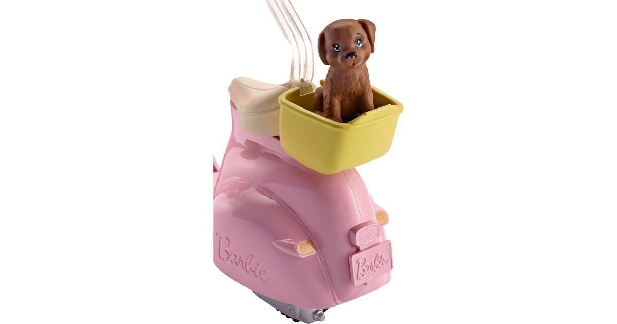 Mit dem Barbie Roller lassen sich tolle Runden auf zwei Rädern drehen. Dazu gibt es einen Tierfreund, der immer gern mitfährt! Der trendige Roller ist in Pink und Gelb mit silberfarbenen Akzenten gestaltet. Die Barbie-Puppe (separat erhältlich) wird durch einen Clip auf dem Sitz gehalten. Sobald der Ständer eingeklappt ist, kann die fantastische Reise losgehen. Und das Hündchen darf im gelben Korb natürlich nicht fehlen. Stilvoll sicher fährt die Barbie-Puppe mit einem gelben Helm. Ob Spritztour oder Abenteuer-Fahrt: Dieser Roller ist bereit zur Abfahrt! Enthält Barbie-Roller mit Korb, Hündchen und Helm; Puppe nicht enthalten. Abweichungen in Farbe und Gestaltung vorbehalten.Art.-Nr.: 1402360