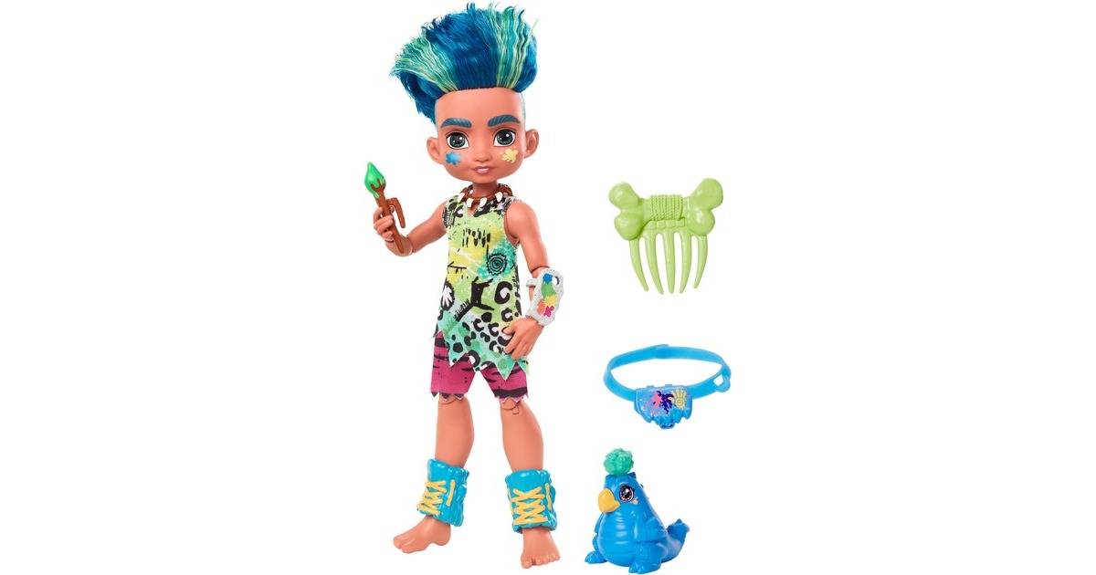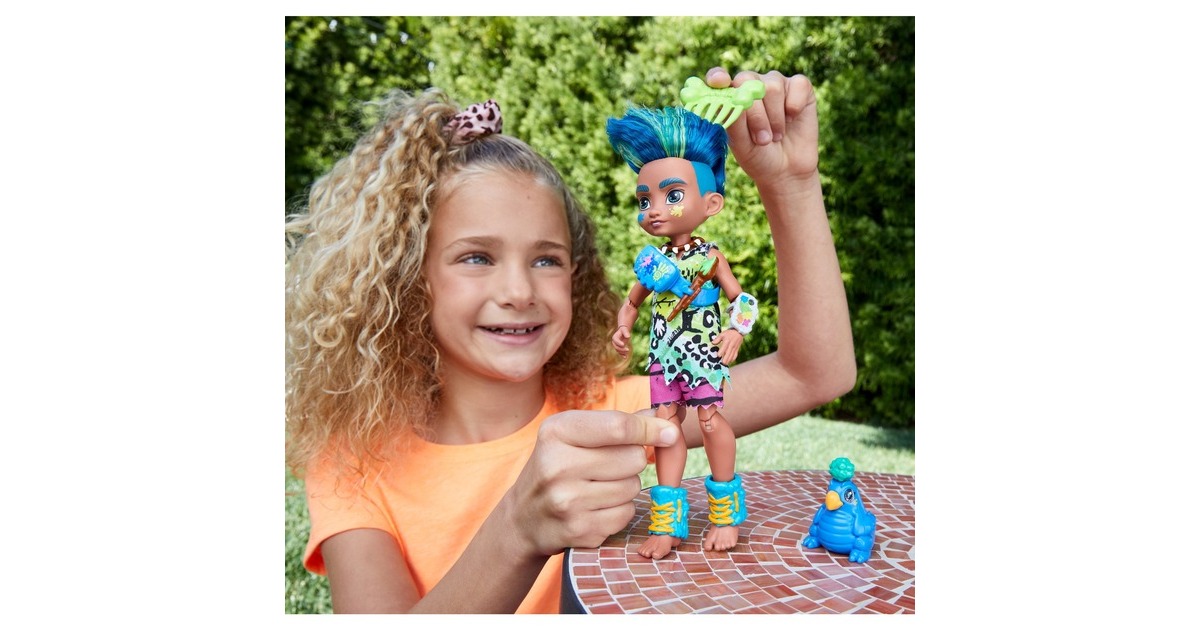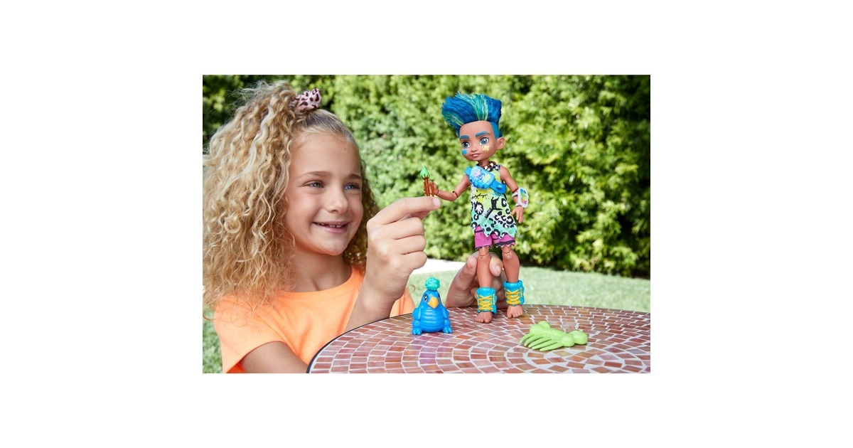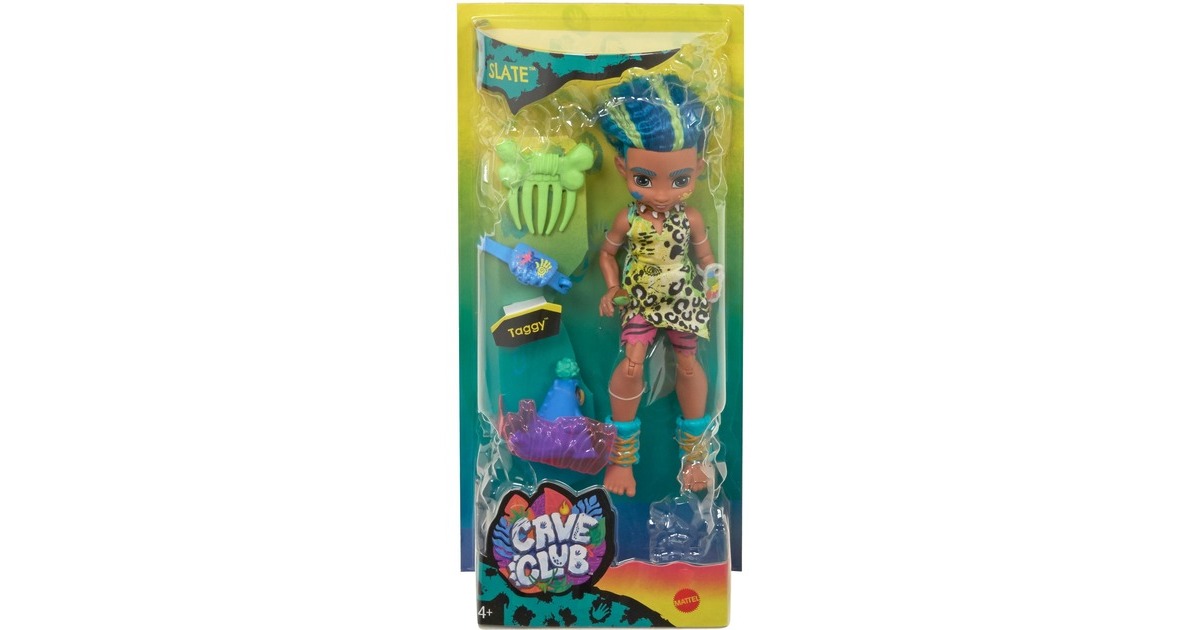 Willkommen beim Cave Club – einer mutigen Gruppe von Urzeit-Kids, die ihrer Zeit eindeutig voraus sind! Die Cave Club Puppen mit ihren ungebändigten Frisuren, ihren leuchtend neonfarbenen Styles und den niedlichen, aber mutigen Dinosaurier Haustieren regen zu unglaublichen Geschichten und Abenteuern an. Slate ist cool, kreativ und absolut begeistert von Graffiti-Kunst. Die Cave Club Slate Puppe trägt als Outfit eine neonfarbene Tunika mit einem Farbspritzer-Muster und bunte gestreifte Shorts. Er ist immer mit seinem prähistorischen Haustier und Freund Taggy unterwegs, und auch ein Steinzeitkamm und Malerwerkzeug dürfen nicht fehlen – mit der Palette, die an seinem Handgelenk befestigt werden kann, kann er überall seine Tags hinterlassen! Dank flexibler Ellbogen, Handgelenke und Knie können Kinder ihm dabei helfen, einem T-Rex auszuweichen, sich unter einer Lavafontäne wegzuducken oder die erste Höhlenmalerei aller Zeiten zu gestalten. Mit den Puppen und dem Spielzeug von Cave Club reist die Phantasie zum Anbeginn der Zeit, wo aufregende, neue Geschichten entstehen! Kinder ab 4 Jahren können mit ihrem Lieblings-Höhlenkind Abenteuer erleben oder auch alle Puppen sammeln, um mit der ganzen Truppe die Geschichte neu zu erfinden. Alle Artikel separat erhältlich. Abweichungen in Farbe und Gestaltung vorbehalten.Art.-Nr.: 1658149