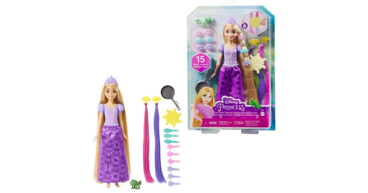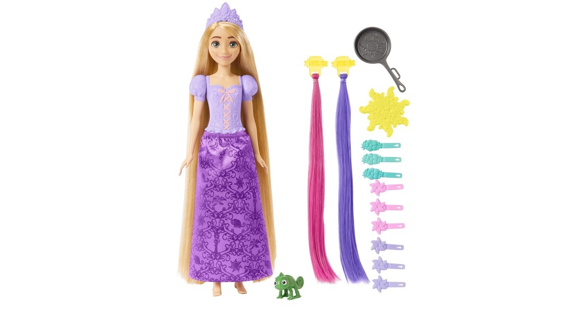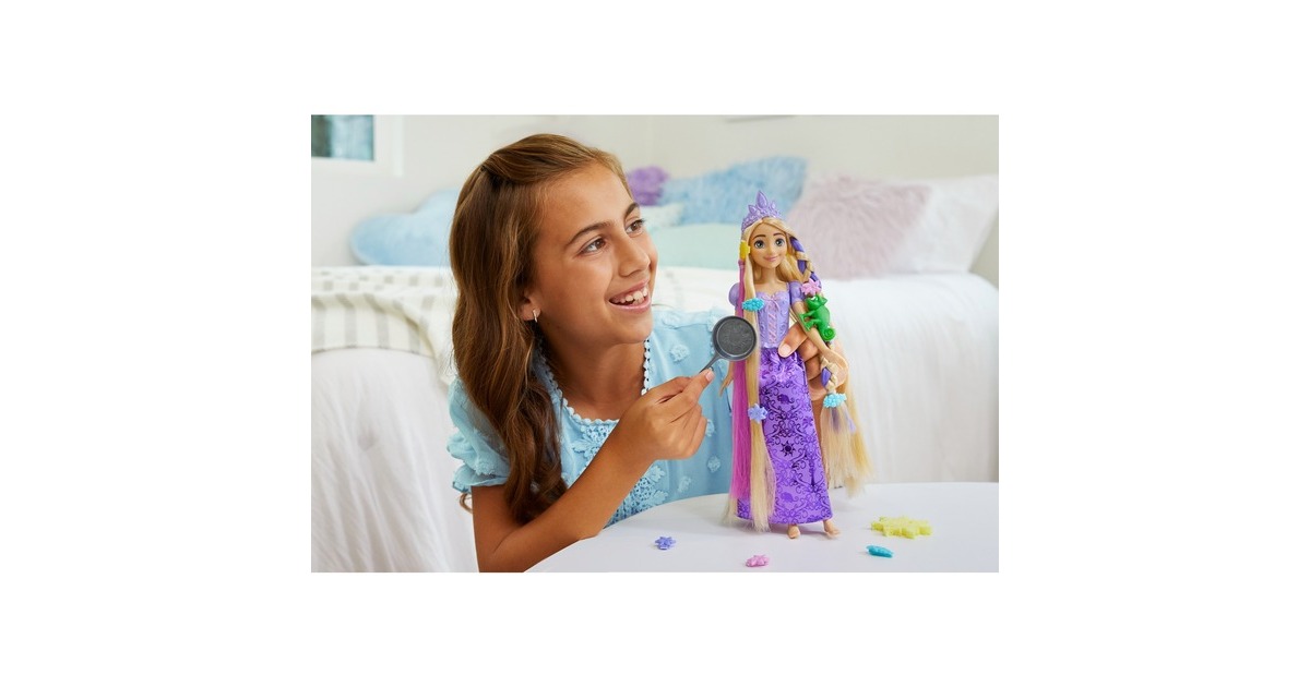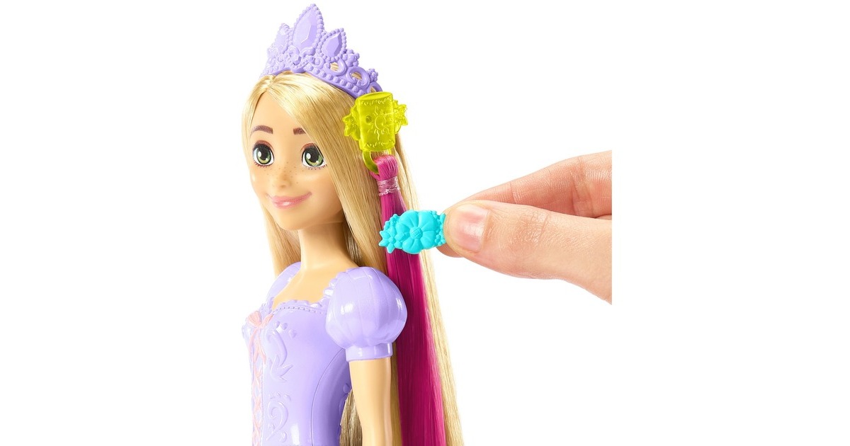 Diese Rapunzel-Puppe, die von der lebhaften und kreativen Prinzessin aus Disneys „Rapunzel – Neu verföhnt“ inspiriert wurde, hat extralange Haare und bietet so viele Styling-Möglichkeiten. Das Set umfasst zwei Haarverlängerungen mit Farbwechseleffekt und jede Menge Hair-Styling-Zubehör für all die märchenhaften Looks, von denen Kinder träumen.Art.-Nr.: 1889897