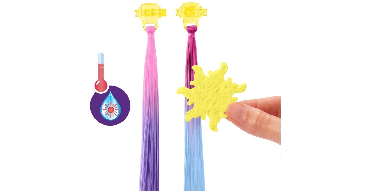 2 Haarverlängerungen mit Farbwechseleffekt, 9 Zubehörteile (u.a. 1 „Bratpfannenbürste“ und 1 Pascal Figur) |