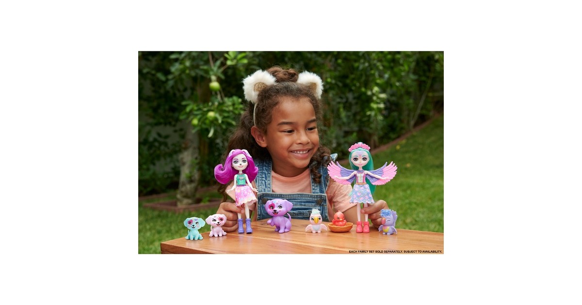 Die Enchantimals kennenlernen: Eine Gruppe liebenswürdiger Charaktere, die mit ihren besten Tierfreunden auf ganz besondere Weise verbunden sind. Sie sind immer zusammen und sehen sich sogar ähnlich! Zu jedem Enchantimals-Familienset gehören eine etwa 15 cm große Puppe und 3 bis 4 Tierfreunde. Damit der Modespaß nicht zu kurz kommt, tragen die Enchantimals abnehmbare Röcke, Schuhe und Accessoires. Ihre Tierfreunde sind liebenswert und jeweils auf ihre eigene Art und Weise besonders. Die besondere Verbindung dieser Enchantimals-Familie liefert Kindern jede Menge Spielideen.Art.-Nr.: 1888510