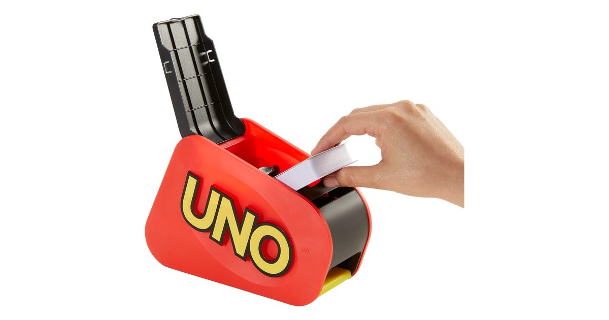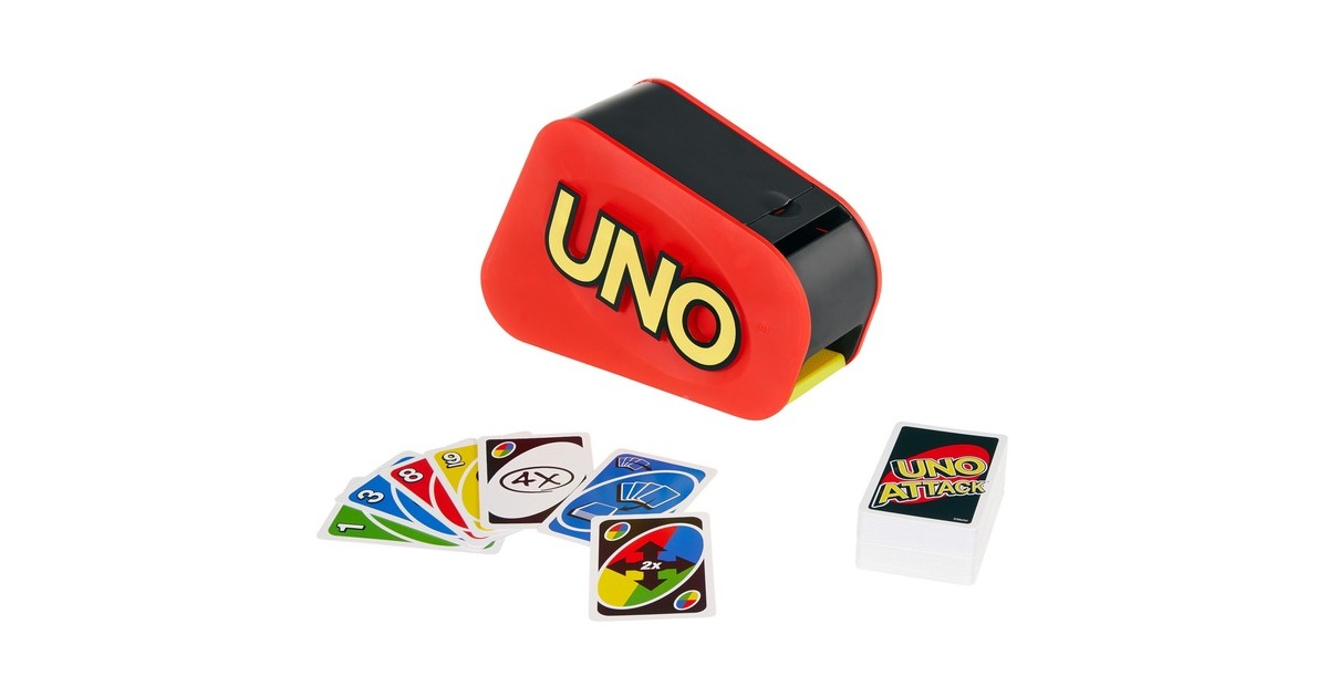 UNO wartet mit einer actiongeladenen, aufregenden Spielvariante auf. Wenn ein Spieler die Aktionskarte „Angriff“ zieht, dann muss er auf die elektronische Kartenschleuder des UNO Extreme-Spiels drücken. Wenn er Glück hat, passiert nichts. Wenn er aber kein Glück hat, muss er den UNO Extreme-Kartenschwall in sein Blatt aufnehmen. Dabei gibt die elektronische Kartenschleuder eine Vielzahl von Geräuschen aus, die das Spiel noch aufregender machen. Die Karten lassen sich perfekt in der Schleuder aufbewahren und für Spielspaß unterwegs einfach mitnehmen. Das Ziel bleibt nach wie vor, alle Karten als Erster abzulegen. Ganz wichtig: Wer nur noch eine Karte auf der Hand hat, muss „UNO!“ rufen. Enthält 112 Karten, eine Kartenschleuder und eine Spielanleitung. Für 2 bis 10 Spieler/Spielerinnen ab 7 Jahren.Art.-Nr.: 1768408