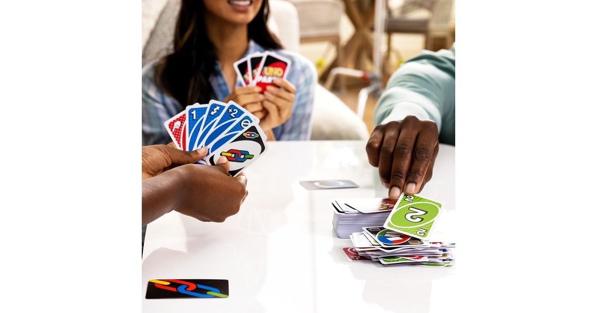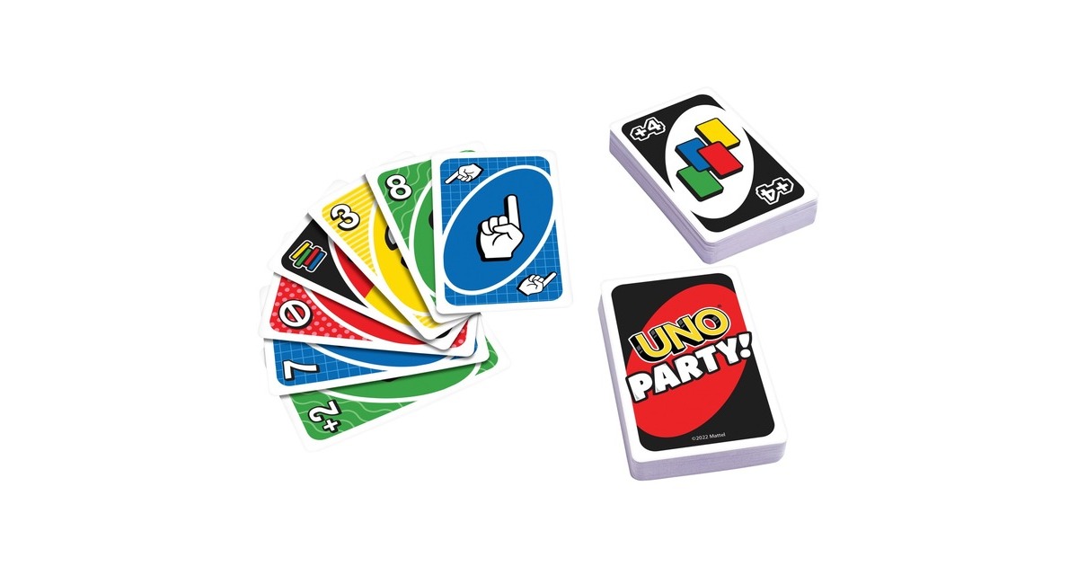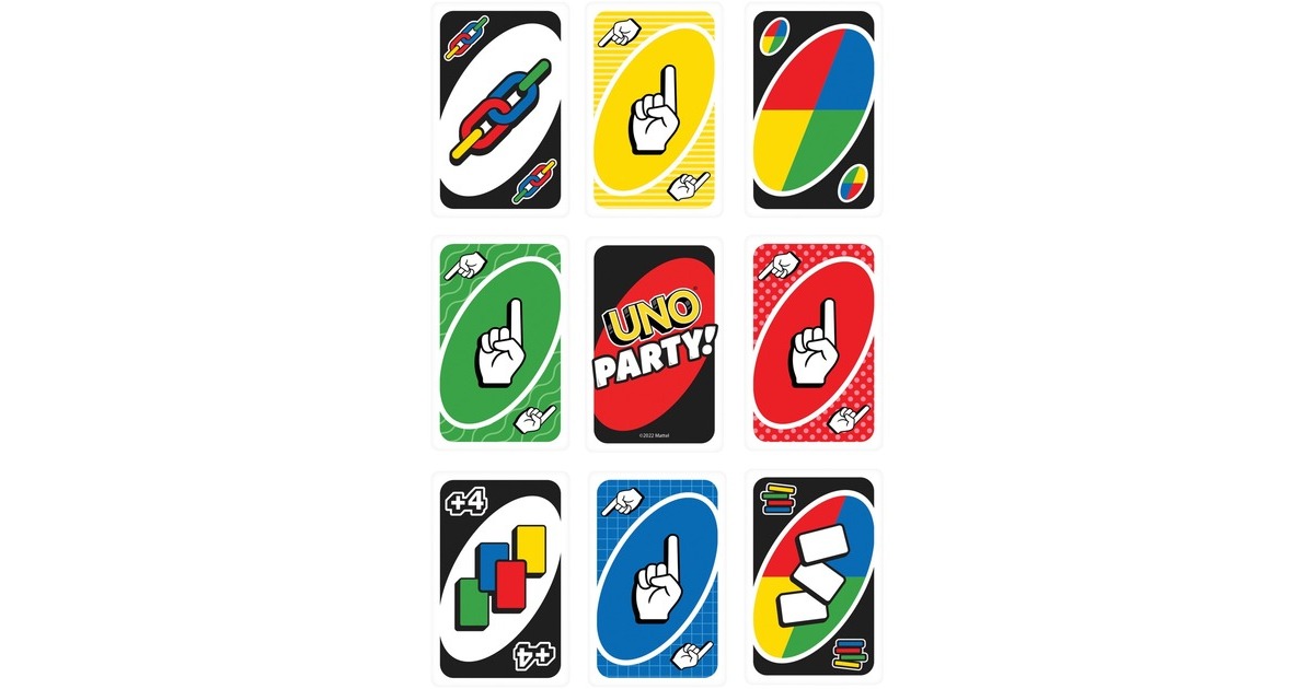 Langer Partyspaß mit dem UNO Party Kartenspiel! Das Spiel ähnelt dem klassischen UNO, hat aber spezielle Regeln für große Gruppen mit 6 bis 16 Spielern! Bei der Zeigen-Nehmen-Regel zeigen alle Spieler auf andere Spieler. Dann muss jeder Spieler so viele Karten ziehen, wie Finger auf ihn zeigen! Bei der Gemeinsam-Ziehen-Regel werden zwei Spieler zusammengetan, die zur selben Zeit Karten ziehen müssen. Beim Schnellspiel sind die Spieler bei einem Zug außer der Reihe dran, wenn sie denn schnell genug sind! Die Karte zur Richtungsverfolgung sorgt dafür, dass allen die Richtung des Spiels klar ist. Das für Partys und große Gruppen ideal geeignete UNO Party-Spiel ist ein tolles Geschenk für jeden Partygastgeber!Art.-Nr.: 1919562