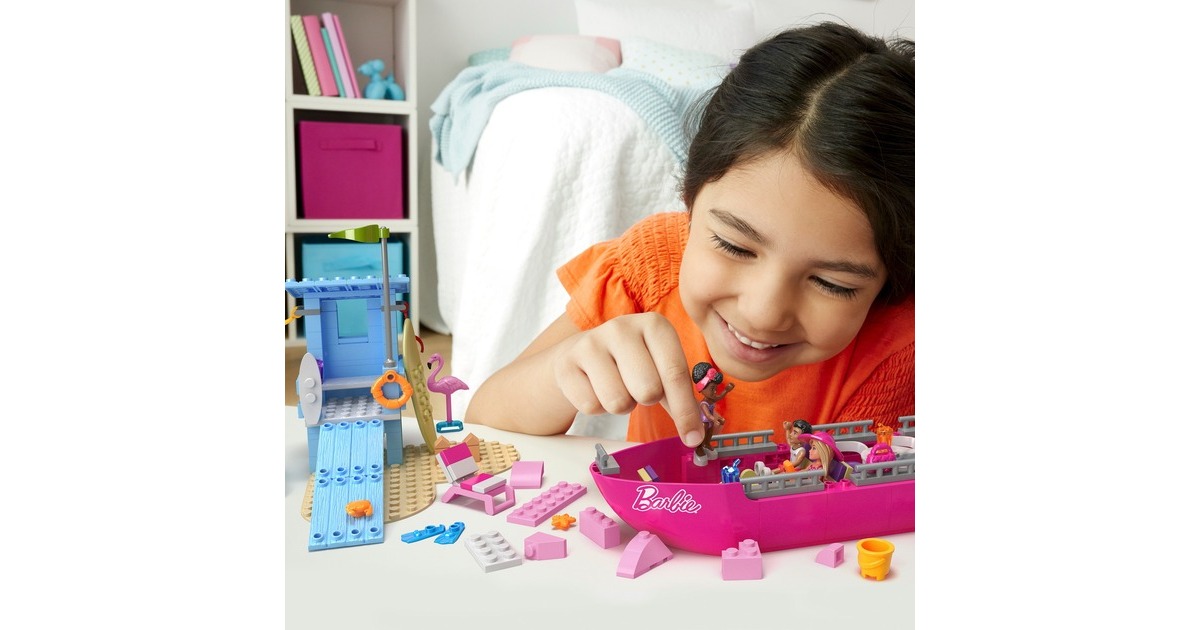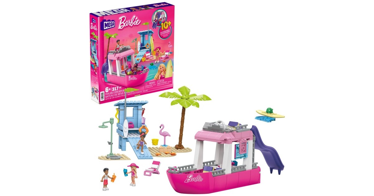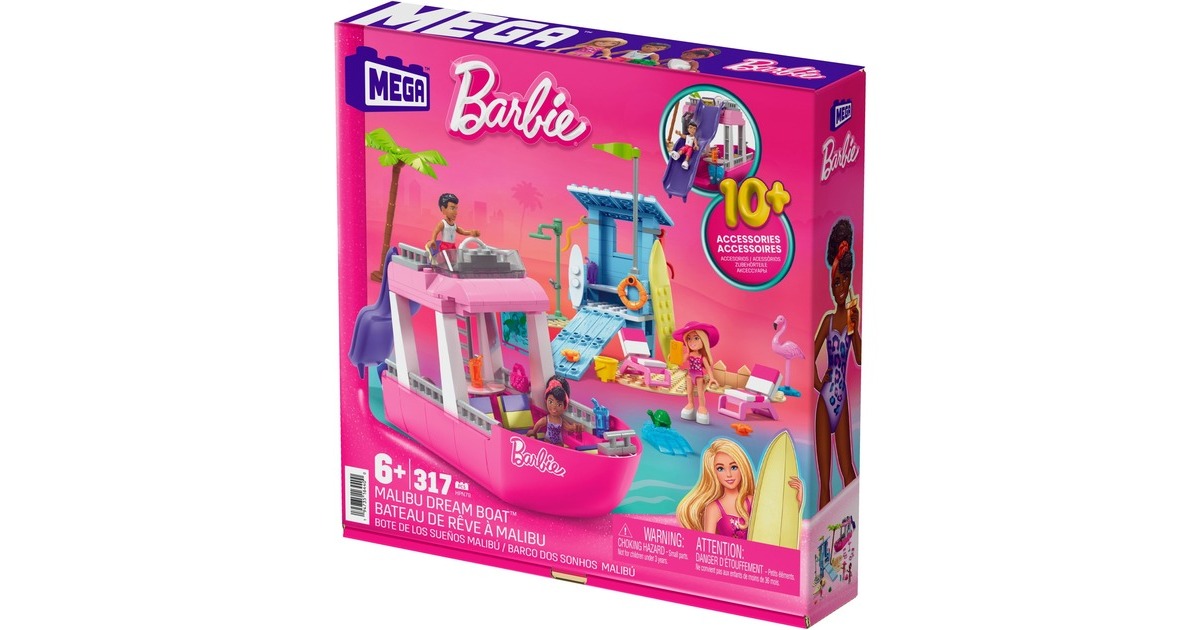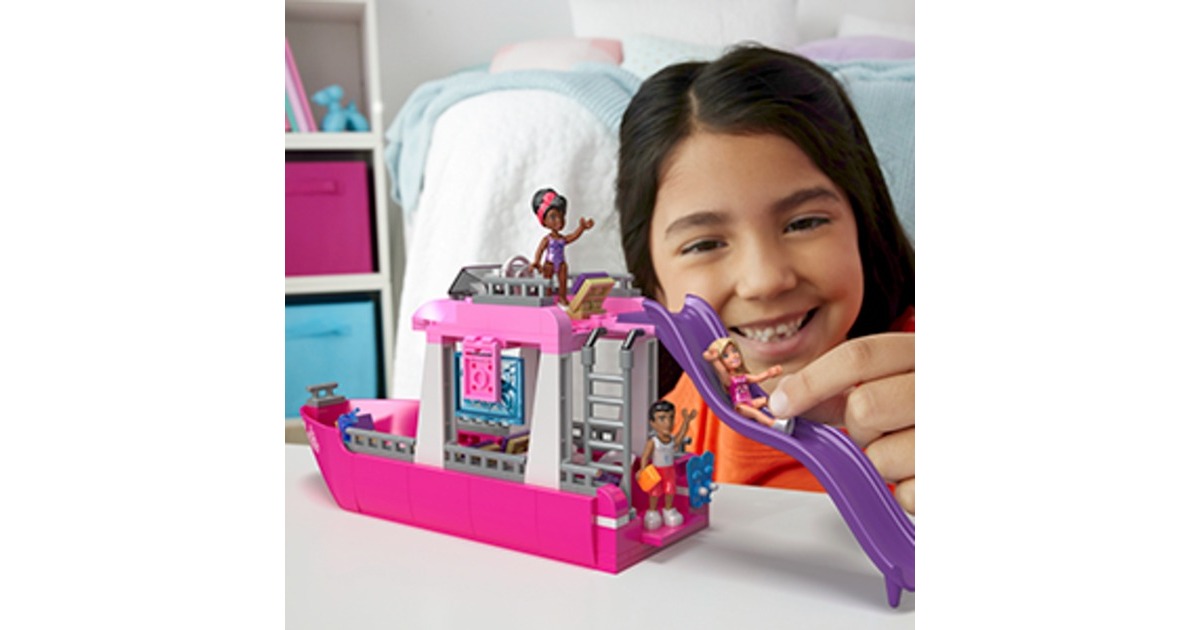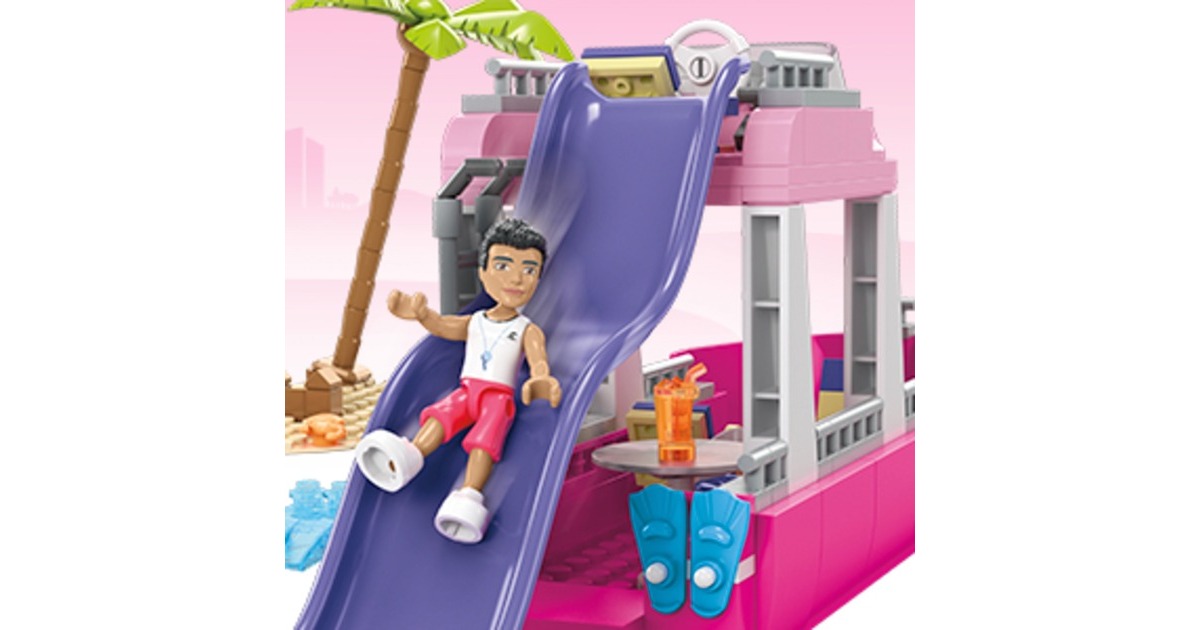 Dieses traumhafte Barbie-Boot zum Zusammenbauen enthält einen Loungesessel, einen Fernseher, einen Sitzbereich, eine Rutsche und ein Sonnendeck. Der Aufsatz auf dem Boot lässt sich einfach abnehmen, so dass auch auf dem Hauptdeck des Boots gespielt werden kann. Hinzu kommt ein baubarer Turm der Rettungsschwimmer von Malibu mit Außendusche und Surfbrett. Das Set besteht aus 317 Teilen. Art.-Nr.: 1919355