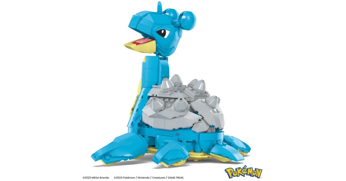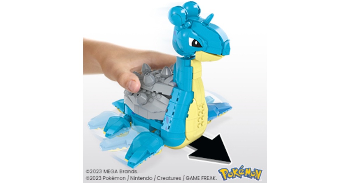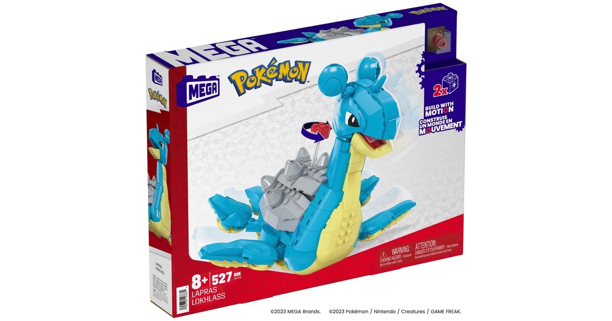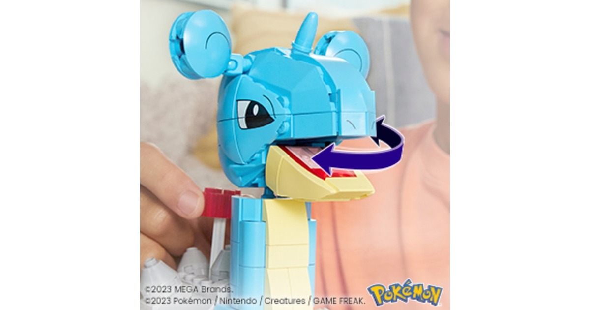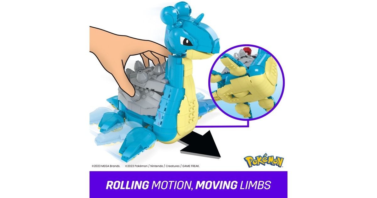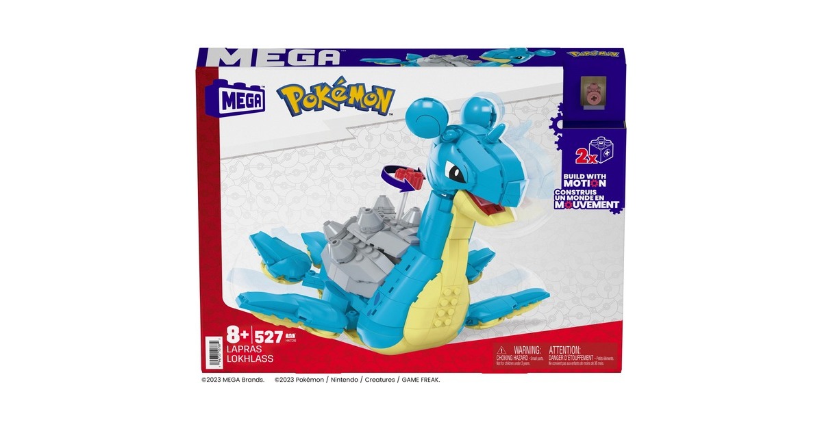 Lapras, das beeindruckende Transport-Pokémon, ist jetzt als Bauset mit Bewegung erhältlich. Das Bauset ist circa 18 cm groß und vermittelt Lapras beeindruckende Größe. Kinder können die Kurbel auf seinem Panzer drehen und schon bewegt Lapras seinen Kopf nach links und rechts oder es schwimmt. Lapras ist eine tolle Ergänzung für jede Pokémon-Sammlung. Es passt super zu anderen MEGA Bausets.Art.-Nr.: 1919362