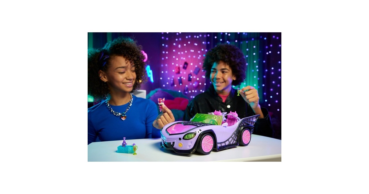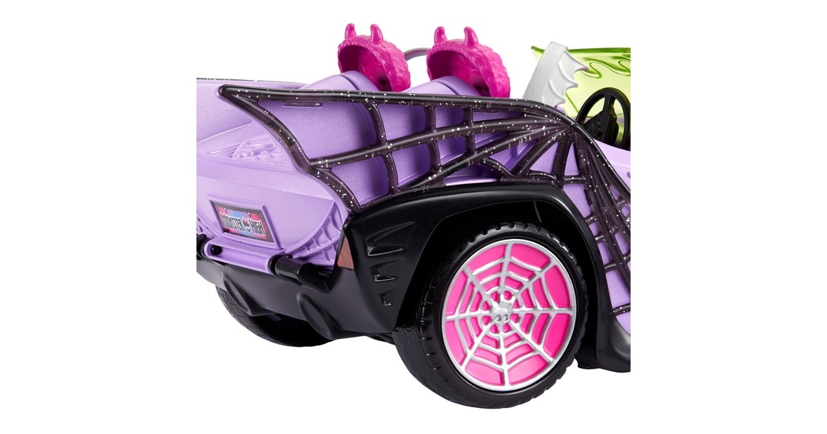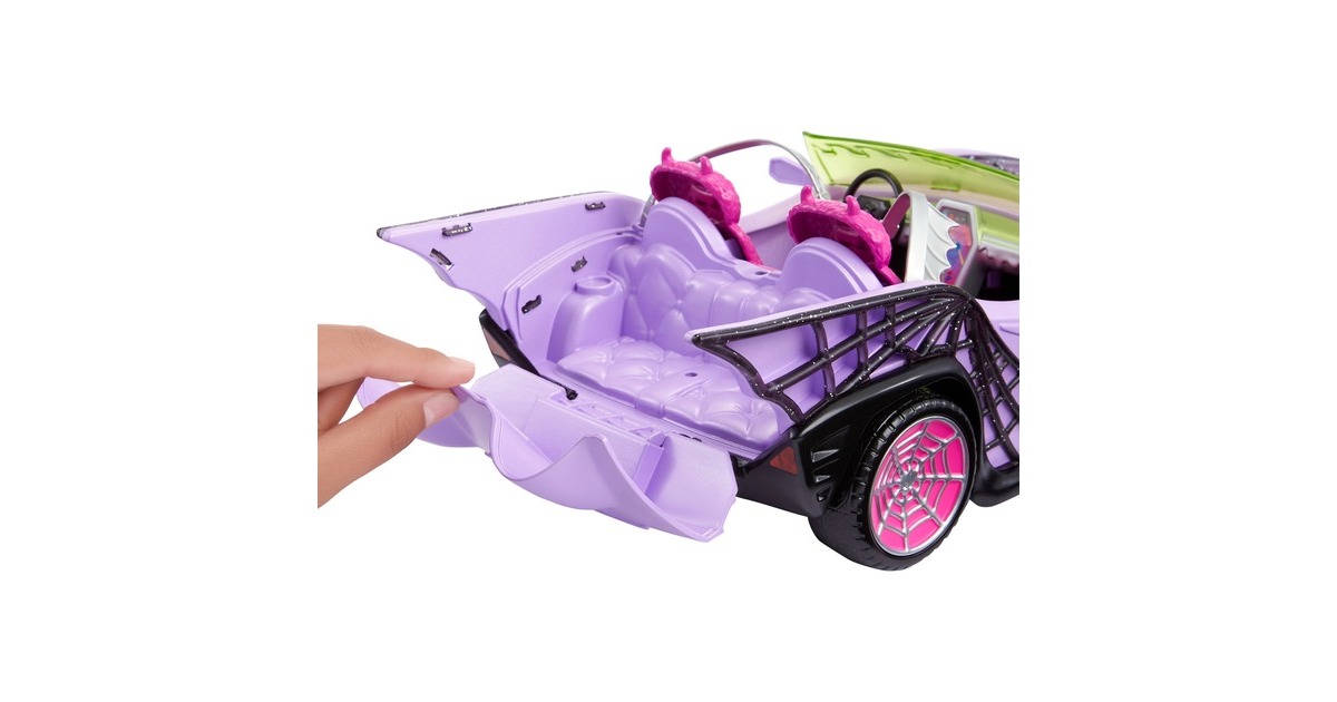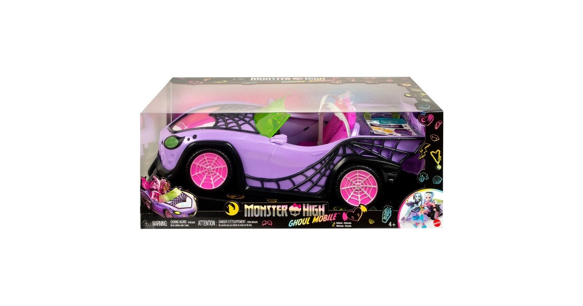 Was für eine monsterkrasse Fahrt! Das Monster High Ghoul Mobile mit seinen schillernden Spinnennetzen, den stylishen Gruseldetails und einem plüschigen Innenraum mit Gurten im Fledermausdesign sorgt für jede Menge Gruselspaß. Es bietet Platz für vier Monster High-Puppen: zwei vorne und zwei hinten im geöffneten Kofferraum (Puppen nicht enthalten). Dieses schaurig-coole Auto umfasst ein Haustier, das am Rücksitz befestigt werden kann. Der furchteinflößende und doch freundliche Geisterfuchs kann es nicht erwarten, gemeinsam mit der Boo-Crew alle möglichen Gruselabenteuer zu bestehen. Das Monster High Ghoul Mobile umfasst auch einen Eiskühler in Sargform, der in den Kofferraum passt. Er kann Zubehör wie eine Flasche und zwei Getränke mit Strohhalmen aufnehmen. Vom Abhängen am offenen Kofferraum um den Eiskühler bis hin zum Cruisen zu schön-schaurigen Beats dieses Fahrzeug im Gruselstil inspiriert zu superlustigen und fantasievollen Geschichten.Art.-Nr.: 1918893
