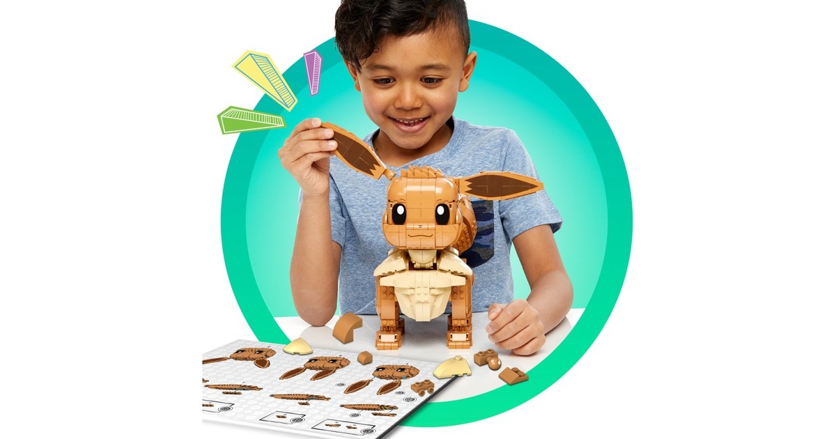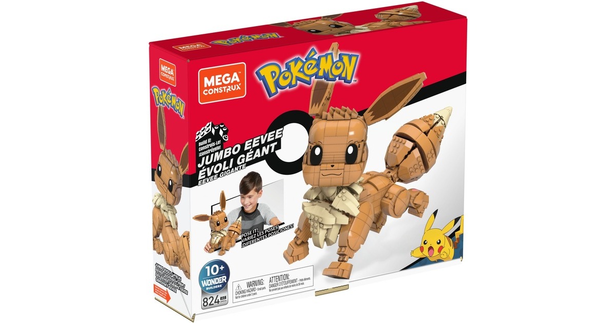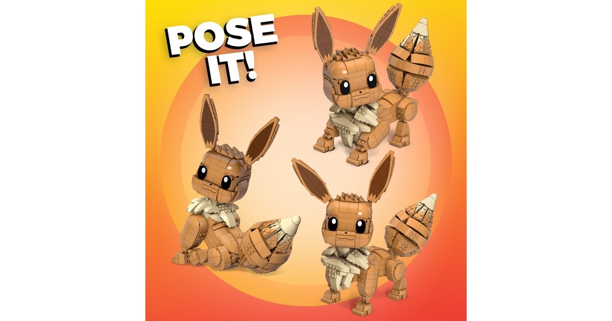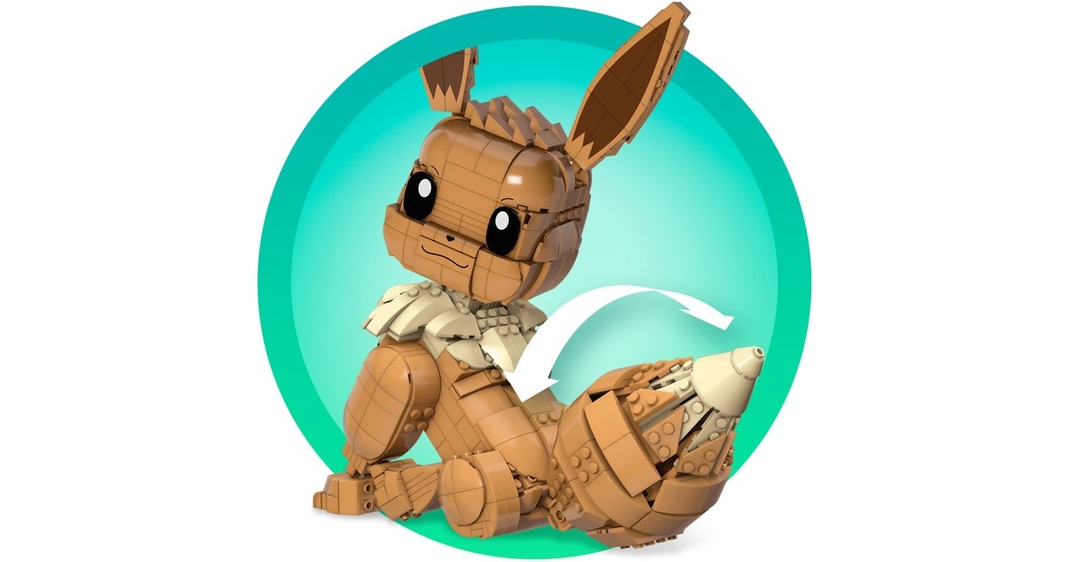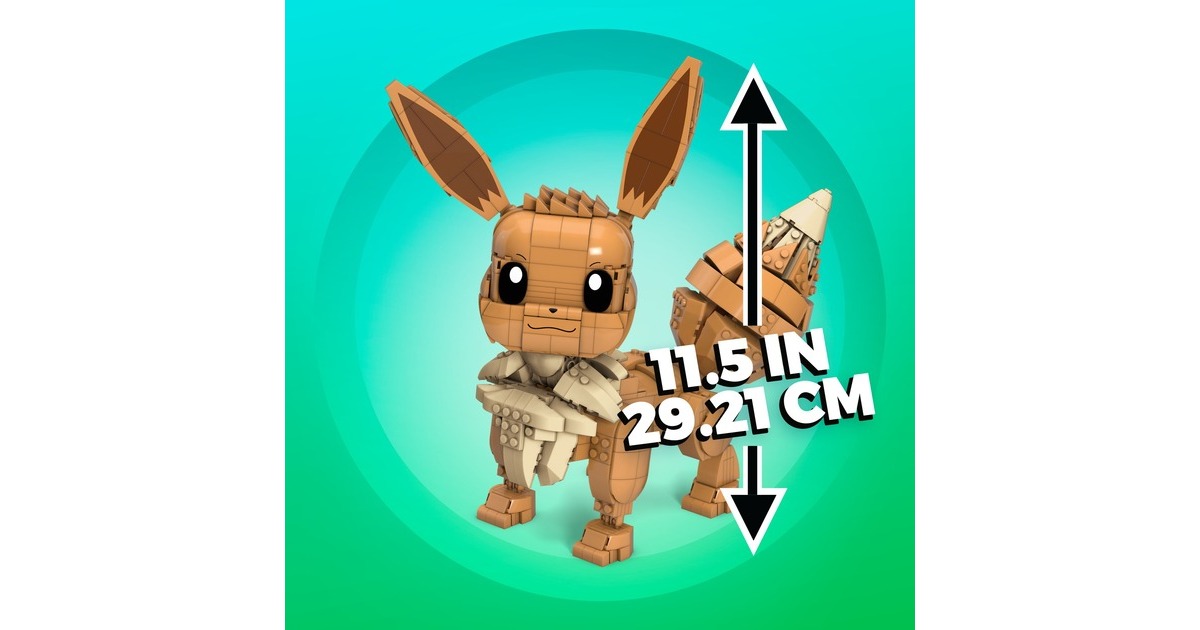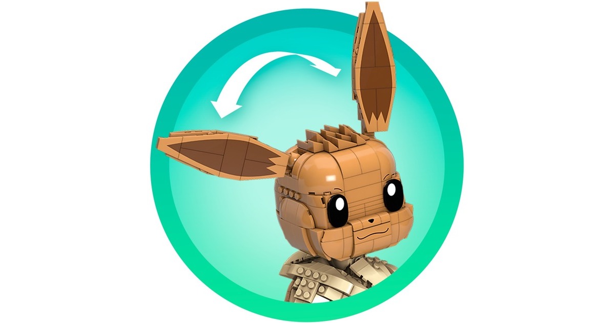 Mit diesem ca. 30 cm großen Evoli zum Selberbauen lassen sich die größten Kämpfe austragen. Dieses Bauset des beliebten Pokémons mit seinen langen Ohren, buschigem Schwanz und süßem Lächeln besteht aus 845 Steinen und Teilen. Dieses nahezu lebensgroße Evoli ist super beweglich und kann sitzen oder stehen – es lassen sich sogar seine Kampfpositionen nachbilden. Perfekt für kreative Baumeister ab 10 Jahren.Art.-Nr.: 1754452