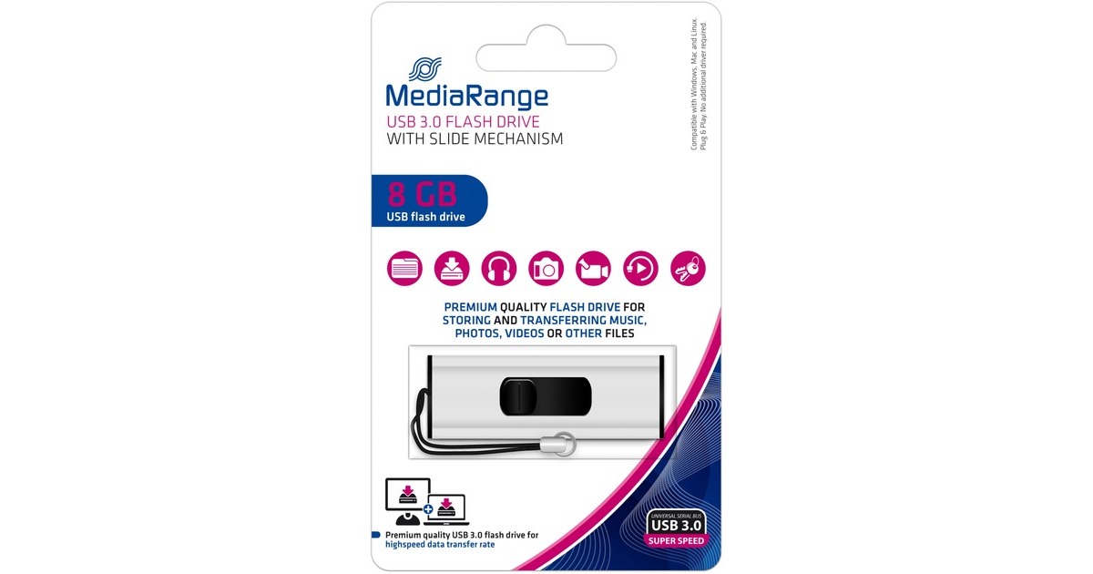 Der MediaRange USB-Stick eignet sich hervorragend zum blitzschnellen Archivieren und Austausch von Daten. Durch den USB Anschluss hat man jederzeit und überall einen komfortablen und sicheren Zugriff auf seine Daten und kann diese schnell und effizient bearbeiten. Dank der kompakten Größe der USB-Sticks, lassen sich die Daten einfach transportieren und sind immer griffbereit.Art.-Nr.: 1617480