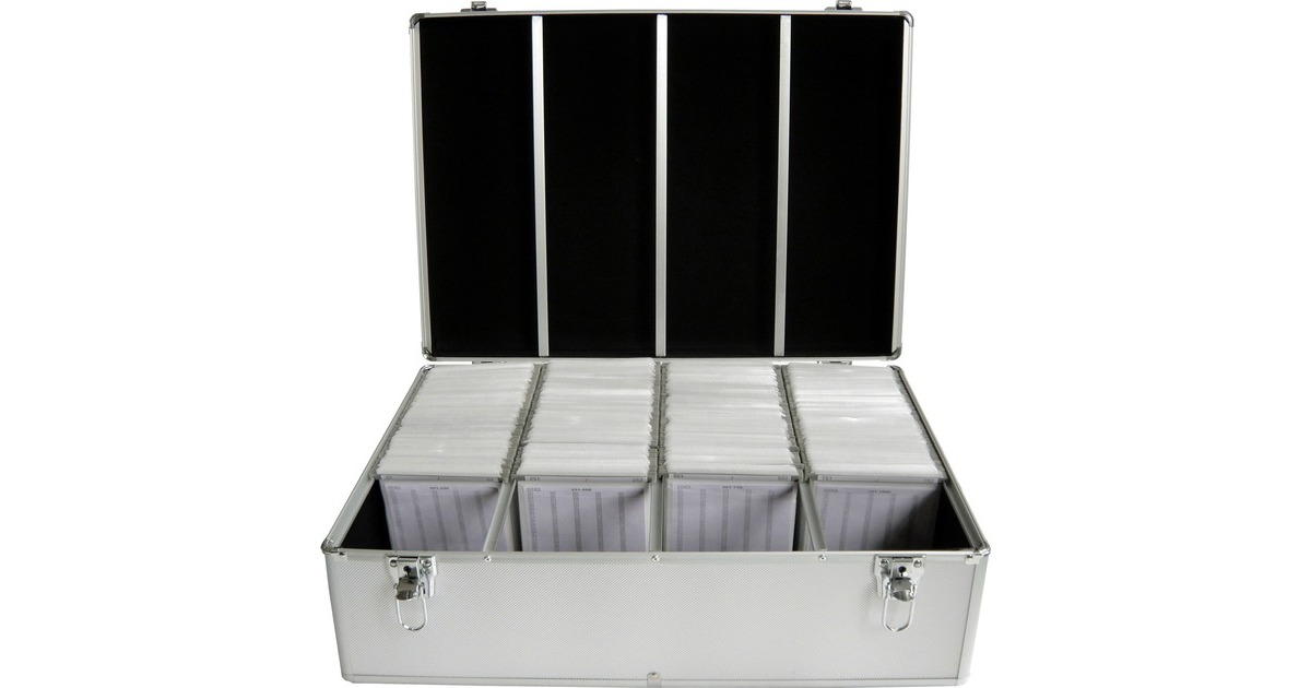 Hier finden 1.000 CDs auf kleinstem Raum einen sicheren Platz! Der elegante und stabile Koffer ist ein Organisationstalent: Mit Hilfe des integrierten Hängeregisters findet man jede CD sofort! Der Koffer ist mit durchnummerierten und beschriftbaren Einhängetaschen aus weichem Flies ausgestattet. Durch ein Schloss sind die "Scheiben" vor fremdem Zugriff geschützt! So ist die CD-Sammlung wirklich gut aufgehoben!Art.-Nr.: 1000410