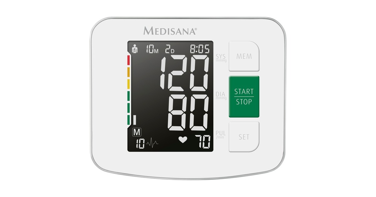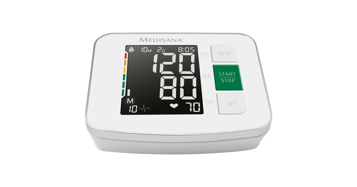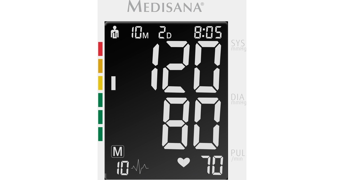 Das moderne Oberarm-Blutdruckmessgerät BU 514 von Medisana verfügt neben einer Arrhythmie-Anzeige, Durchschnittswertberechnung und Klassifizierung der Messwerte gemäß WHO auch über je 90 Speicherplätze für 2 Benutzer. Dank der bis zu 22 mm großen Ziffern lassen sich die Werte leicht ablesen.