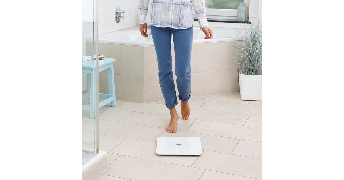 Die Körperanalysewaage Medisana BS 450 connect misst nicht nur das Gewicht mit einer Genauigkeit von 100 Gramm, sie gibt auch den Anteil von Körperfett, Körperwasser sowie Muskelmasse und Knochengewicht in Prozent der Gesamtmasse aus. So lässt sich feststellen, ob die zugenommenen Kilos vom Joggen (Muskelmasse) oder vom Schlemmen (Körperfett) kommen. Dazu bietet die Waage eine integrierte Kalorienbedarfsanalyse und BMI-Ermittlung. Der Wägebereich liegt bei bis zu 180 kg und es gibt je 30 Speicherplätze für 8 Benutzer sowie automatische Nutzererkennung. Über die separate vita-Dock-App lassen sich zusätzliche Funktionen über Bluetooth auf einem Smartphone oder Tablet einstellen.
