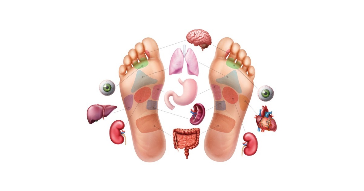 Kompressionsmassage für den Fußrücken und Akupressurpunkt-Massage für die Fußsohle |