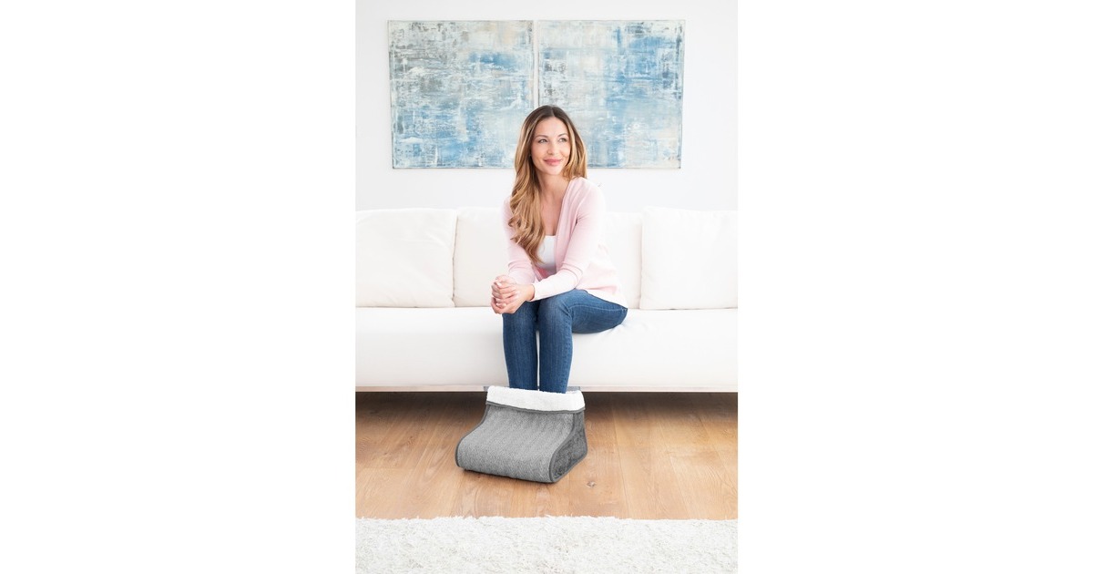 Für müde Füße und kalte Wintertage eignet sich der Fußwärmer FW 150. Mit seiner Oberfläche in moderner Strickoptik stellt der FW 150 einen echten Hingucker dar. Drei verschiedene Temperaturstufen und ein besonders flauschiges, abnehmbares Innenfutter sorgen für wohltuende Wärme und Gemütlichkeit. Zu überzeugen weiß der Fußwärmer auch in Sachen Sicherheit: Das integrierte Sicherheitssystem ist mit einem Überhitzungsschutz ausgestattet.
