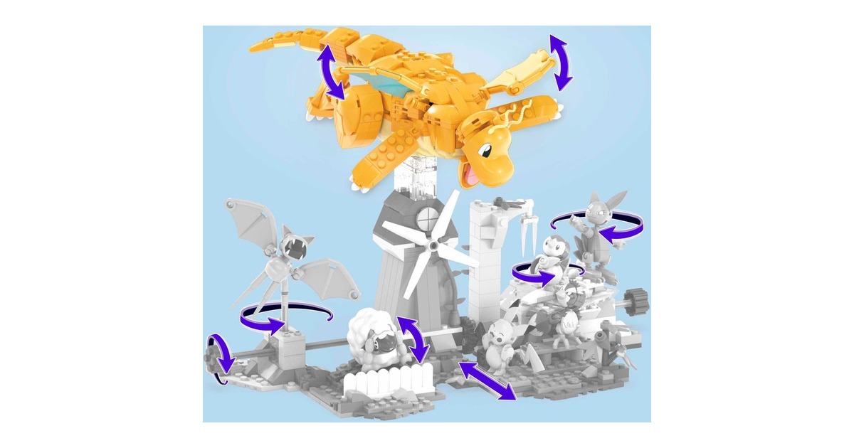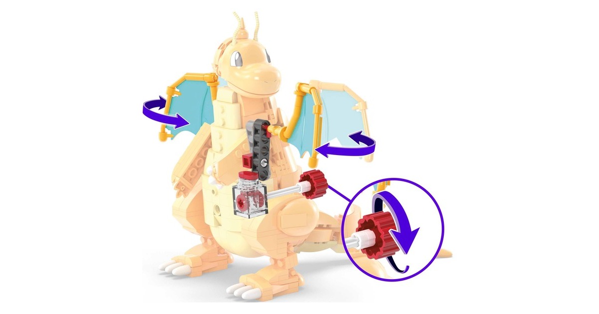 Mit diesem Bauset mit dem innovativen Motion Brick kannst du den Dragonite bei seinem Flug durch die Wüste beobachten. Die Anleitung Schritt für Schritt befolgen, um Pokémon aufzubauen, dann die Kurbel drehen, um die Flügel des beweglichen Dragonites auszuklappen. In Kombination mit der Windmühlen-Farm kannst du eine noch größere Pokémon-Welt mit sich bewegenden Elementen bauen. Alle Artikel separat erhältlich.