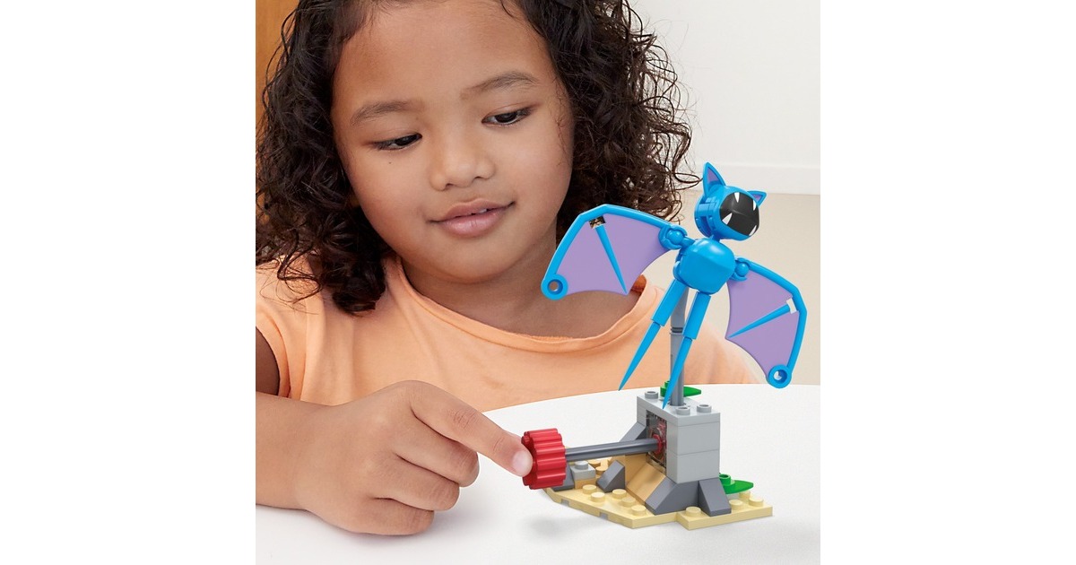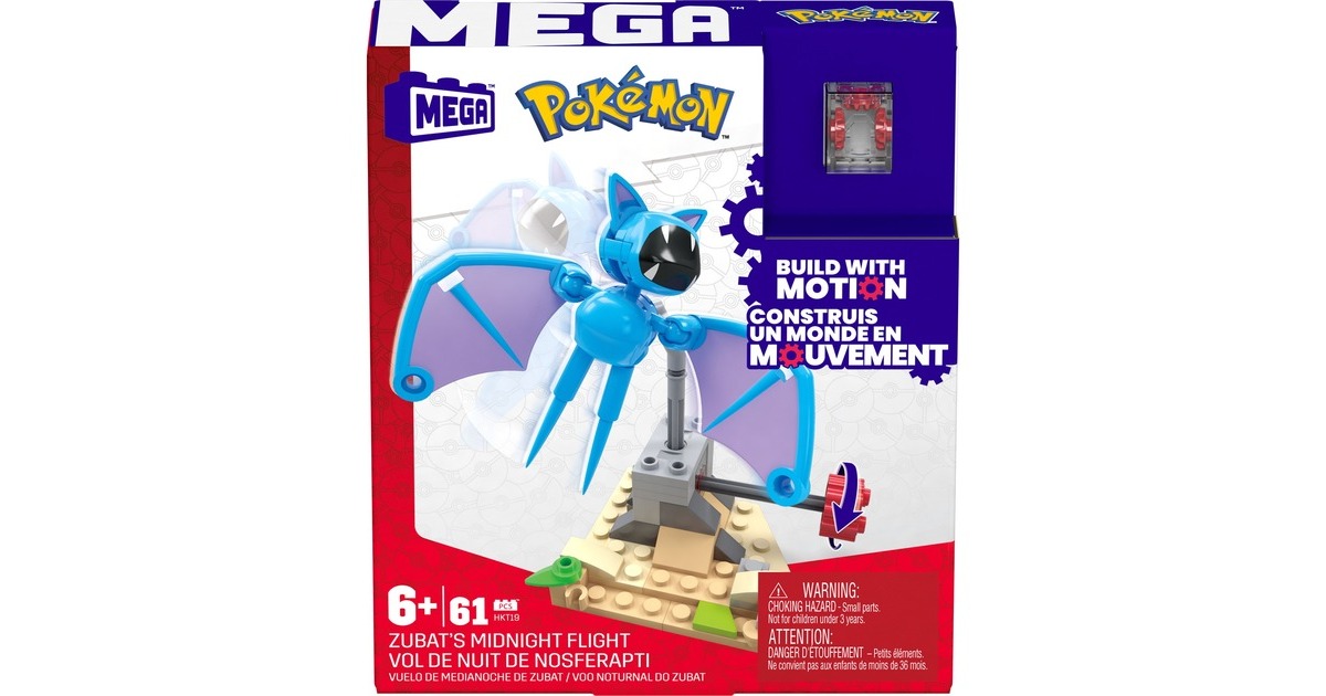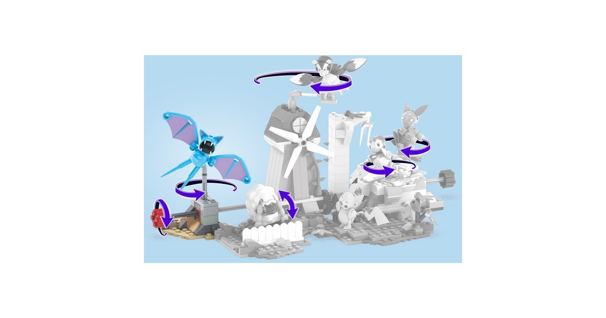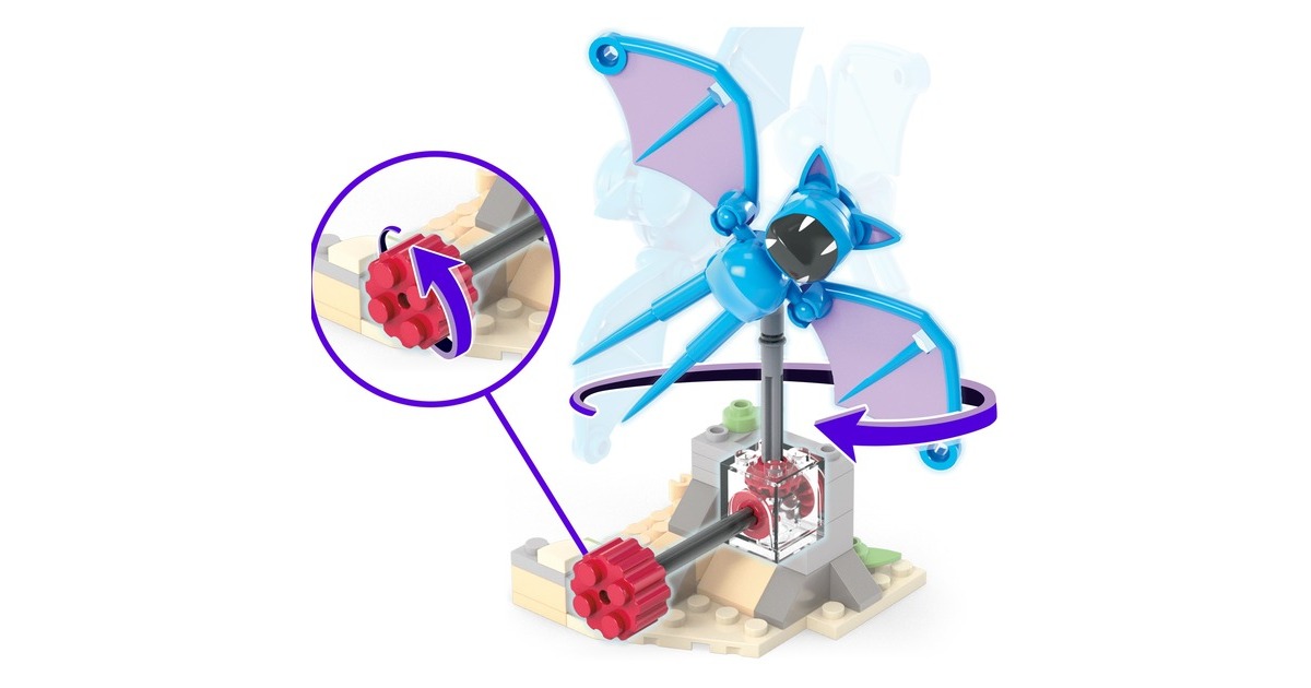 Mit diesem Bauset mit dem innovativen Motion Brick kannst du Zubat bei seinem Flug durch die Wüste beobachten! Bau die Wüste auf und drehe dann die Kurbel und schau zu, wie Zubat seine Kreise über der Wüste dreht. In Kombination mit anderen Sets von Adventure Builder kannst du eine noch größere Pokémon-Welt mit sich bewegenden Elementen bauen (alle Artikel separat erhältlich).Art.-Nr.: 1888839