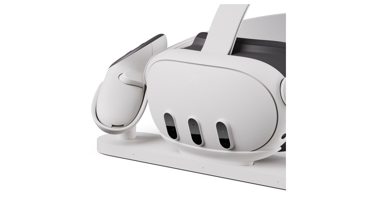 Mit der kabellosen All-in-One-Ladestation für das Headset und die Controller von Meta Quest 3 ist man immer spielbereit. Sie beinhaltet leistungsstarke, wiederaufladbare Lithium-Ionen-Batterien für die Controller, sodass man das Headset und die Controller zum kabellosen Laden einfach nur einlegen braucht. Während des Ladevorgangs bewahrt die Station die Geräte attraktiv und griffbereit auf. Die LED-Leuchten zeigen gut sichtbar an, wann das Headset und die Controller wieder vollständig aufgeladen und einsatzbereit sind.Art.-Nr.: 100018270