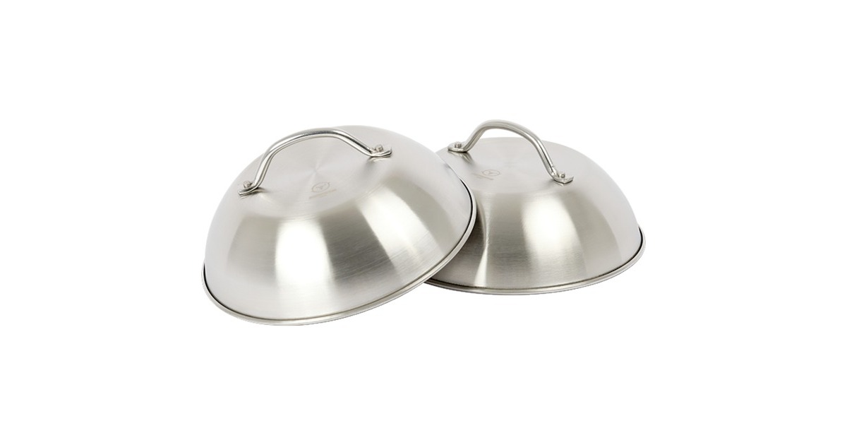 Das 2er Set BurgerCover XL von Moesta-BBQ ist eine Schmelz- und Hitzeglocke für alle Burger-Arten, eine Edelstahlhaube zum Überbacken auf der BBQ Disk oder anderen Grills. Das BurgerCover kompensiert die fehlende Oberhitze und sorgt für eine gleichmäßige Wärmeverteilung, für perfekte Burger mit schnell und perfekt verlaufendem Käse, bevor das Patty übergart. Mit einem Durchmesser von 22,5cm und einer Höhe von 7cm ist die aus Edelstahl gefertigte Abdeckung nebenbei auch noch echter Hingucker.Art.-Nr.: 1679907