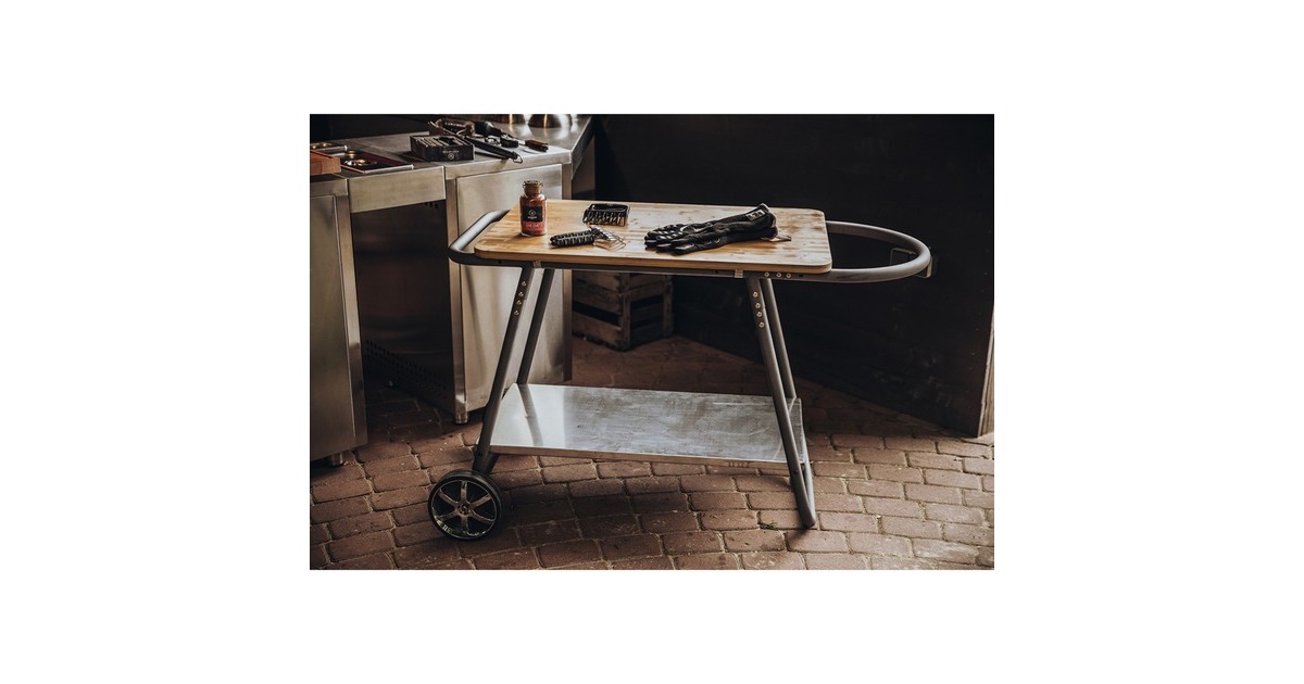 Der Moesta Sheriff Pelletgrill Beistelltisch passt perfekt zum Sheriff Grill. Das Rahmenrohrgestell inklusive Rollen ist mit einem XL Bambusbrett ausgestattet. Diese Arbeitsplatte hat die Abmessungen 60 x 90 cm. Der Beistelltisch eignet sich hervorragend für das Zubereiten von Speisen.Art.-Nr.: 1700999