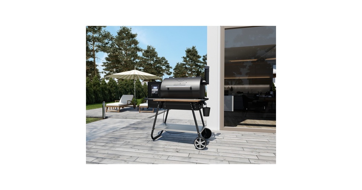 Der Sheriff Pellet Grill von Moesta-BBQ ist ein Grill für Alles. Durch seine Temperaturen bis zu 330°C kann man alles auf dem Sheriff grillen. Von Trendgerichten wie Pulled Pork, die gesmoked werden, bis hin zu Bratwurst oder Steaks. Die Trendgerichte wie Pulled Pork, American SpareRibs, Pulled Chicken, Rinder Brisket und viele weitere Leckereien begeistern immer mehr Grillfans in Deutschland. Daher hat Moesta-BBQ einen Pelletgrill entwickelt, der den klassischen Smoker ersetzt. Vielseitiger kann Grillen kaum sein: Backen, Braten, Schmoren, Barbecue, Räuchern und Grillen in einem Gerät. Der Sheriff Pellet Grill erzeugt ein natürliches Holzfeueraroma für einzigartigen Geschmack beim Smoken, aber auch für direktes Grillen ist er perfekt geeignet. Der Pellet Grill wird einfach an der Steckdose angeschlossen und es kann losgehen. Grillen mit Holzfeuer kann so einfach sein, denn die Bedienung des Moesta-BBQ Pellet Grills ist kinderleicht. Die Symbole der Sheriff Control Unit sind selbsterklärend, und mit nur einem Knopfdruck startet das Zündsystem und die Zieltemperatur am Pelletgrill wird eingestellt. Innerhalb kürzester Zeit wird die Temperatur erreicht, und die präzise Temperaturregelung sorgt dafür, dass die Hitze konstant bleibt. Dazu wird immer genau die richtige Pelletmenge in die Brennkammer befördert. Der Sheriff vereint das klassische Smoker Design mit der Moderne. Die hochwertige Verarbeitung, zwei Edelstahlroste, eine doppelwandige Brennkammer und ein stabiles Gehäuse machen ihn einzigartig. Das individuelle Design (Industrial Style) mit verstellbarem Schornstein, die wuchtigen Rollen, das stabile Rahmenrohrgestell und Arbeitsfläche und Ablage aus Echtholz machen ihn zum Hingucker in jedem Garten.Art.-Nr.: 1704558