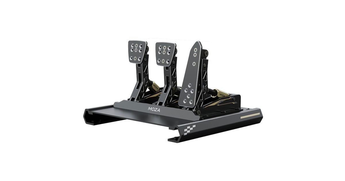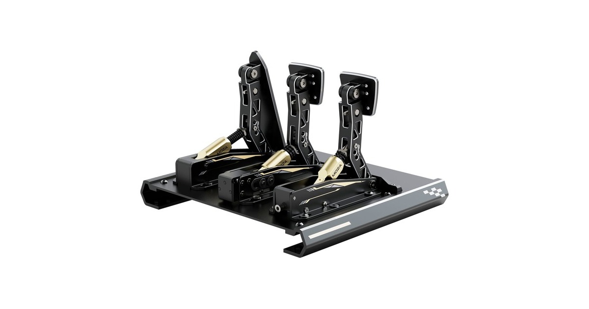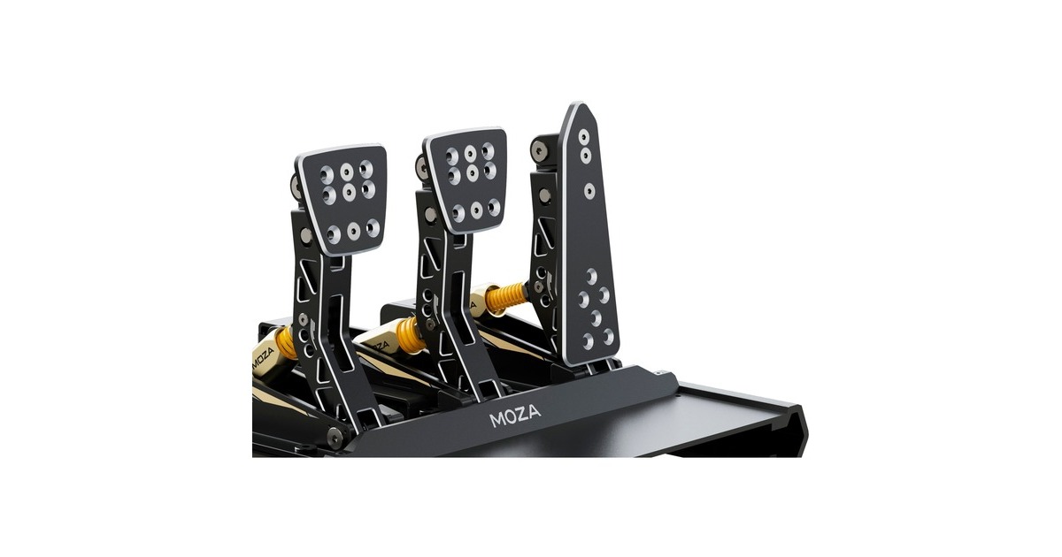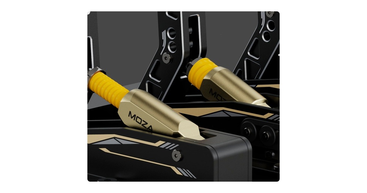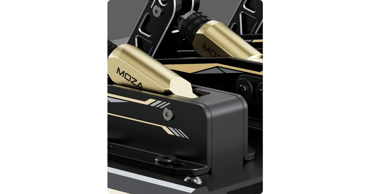 Mit den MOZA CRP Pedals lässt sich die Kunst des Fahrens meistern! Mit ihrem eleganten schwarz-goldenen Design sind die CRP Pedals