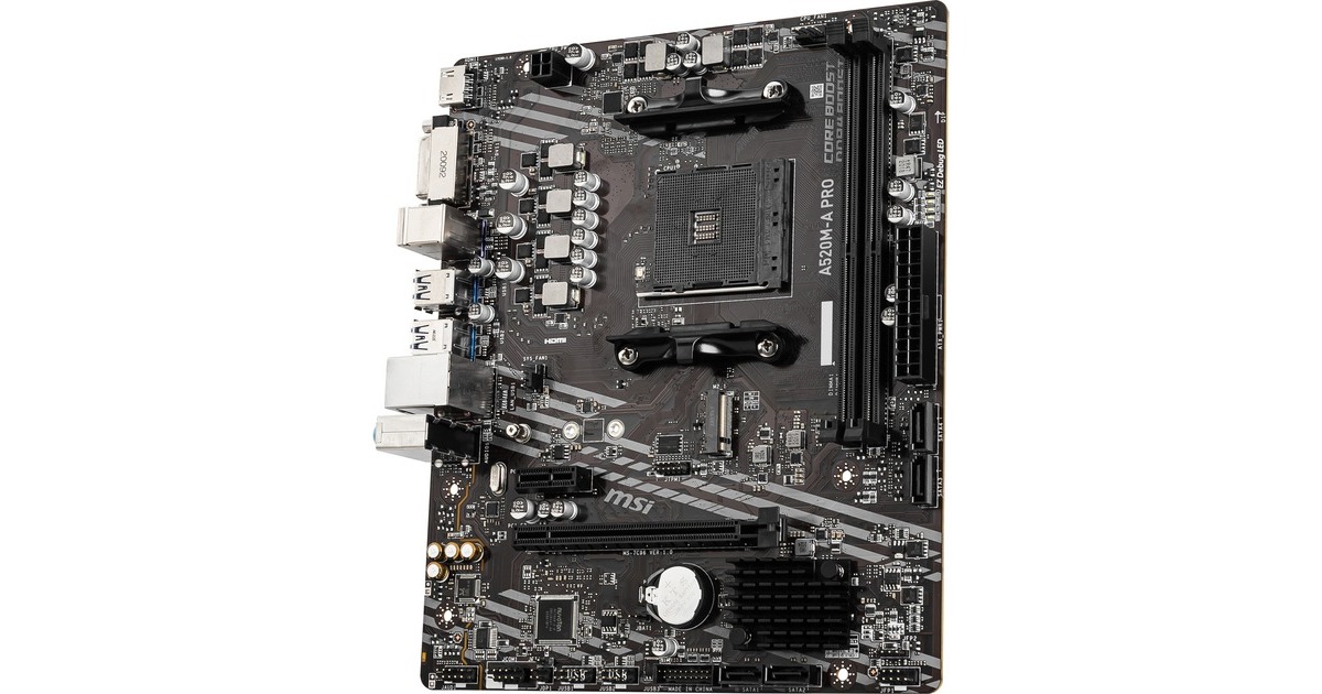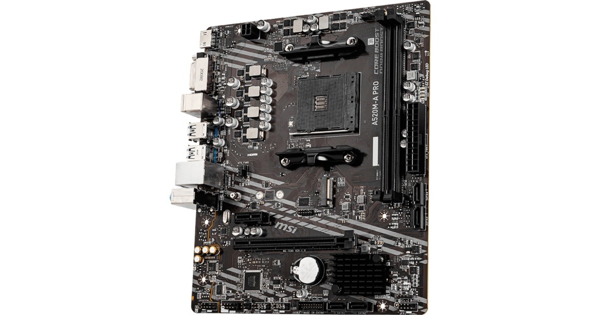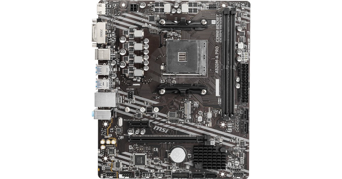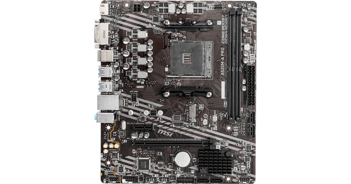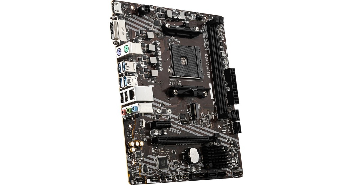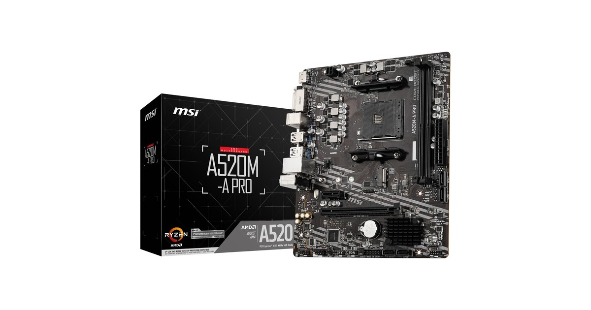 Das MSI A520M-A PRO basiert auf dem AMD-A520-Chipsatz und unterstützt AMD-Prozessoren für den Sockel AM4. Es verfügt über zwei DDR4-Slots für bis zu 64 GB Arbeitsspeicher. Zur weiteren Ausstattung des MSI A520M-A PRO gehören ein PCIe-3.0-x16-Slot und ein PCIe-3.0-x1-Slot. Außerdem verfügt das MSI A520M-A PRO über 8-Kanal-Sound, eine Gigabit-LAN-Schnittstelle, vier SATA3-Anschlüsse, einen M.2-Anschluss und eine Reihe an USB Schnittstellen.Art.-Nr.: 1668255