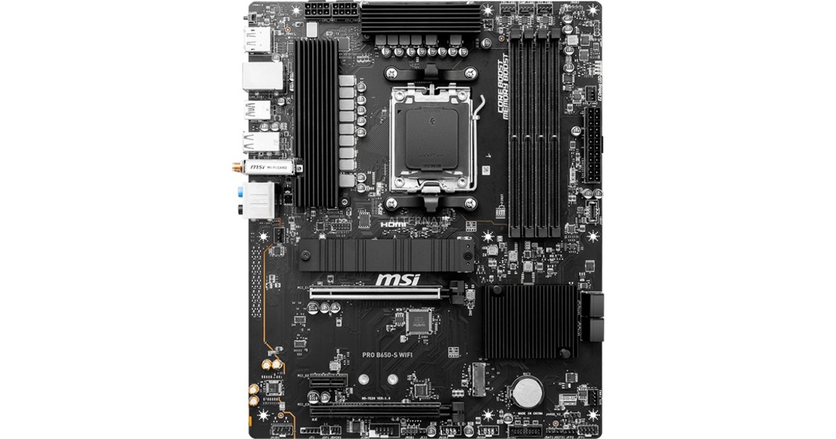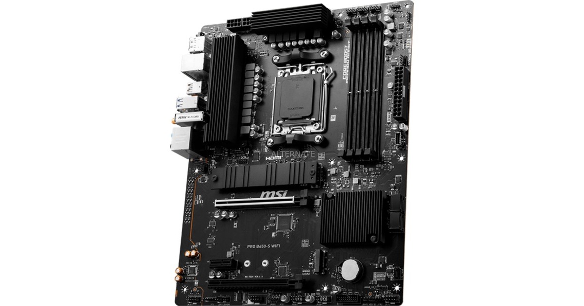 Das MSI PRO B650-S WIFI basiert auf dem AMD-B650-Chipsatz und unterstützt AMD-Prozessoren für den Sockel AM5. Es verfügt über vier DDR5-Slots für bis zu 192 GB Arbeitsspeicher. Zur weiteren Ausstattung des MSI PRO B650-S WIFI gehören ein PCIe-4.0-x16-Slot, ein PCIe-4.0-x4 Slot und ein PCIe-3.0-x1-Slot. Außerdem verfügt das MSI PRO B650-S WIFI über 8-Kanal-Sound, eine 2.5 Gigabit-LAN-Schnittstelle, WiFi 6E, Bluetooth 5.3, sechs SATA3-Anschlüsse, zwei M.2-Anschlüsse und eine Reihe an USB-Schnittstellen.Art.-Nr.: 100011903