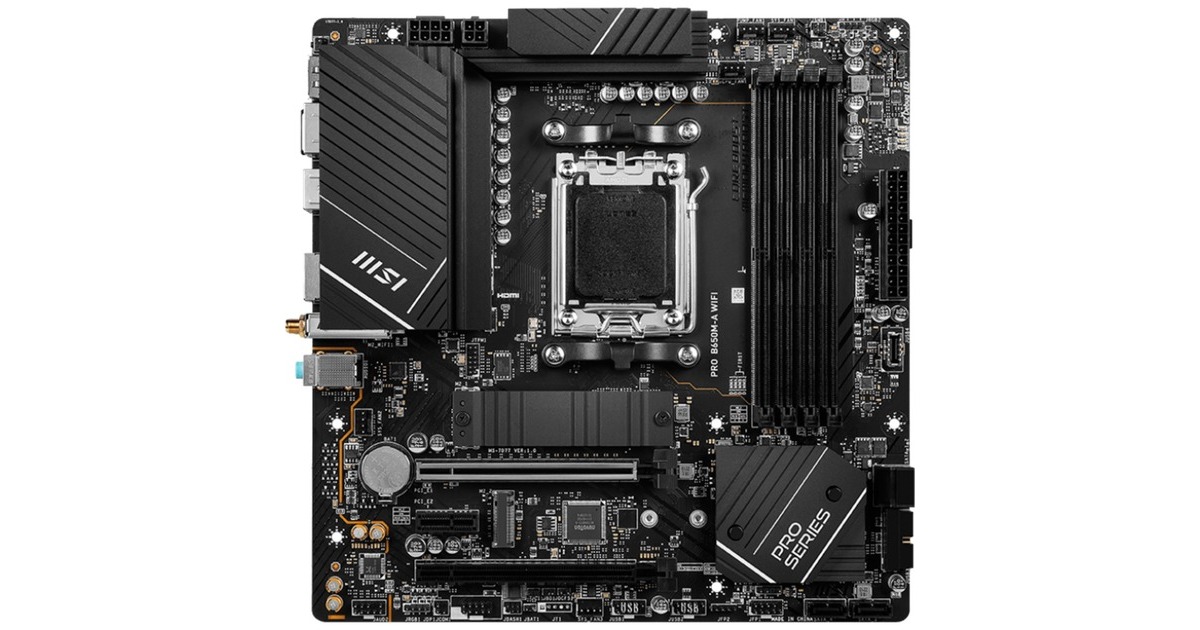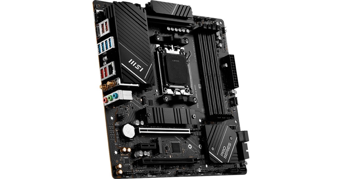 Das MSI PRO B650M-A WIFI basiert auf dem AMD-B650-Chipsatz und unterstützt AMD-Prozessoren für den Sockel AM5. Es verfügt über vier DDR5-Slots für bis zu 128 GB Arbeitsspeicher. Zur weiteren Ausstattung des MSI PRO B650M-A WIFI gehören zwei PCIe-4.0-x16-Slots und ein PCIe-3.0-x1-Slot. Außerdem verfügt das MSI PRO B650M-A WIFI über 8-Kanal-Sound, eine 2.5 Gigabit-LAN-Schnittstelle, WiFi 6, Bluetooth 5.2, sechs SATA3-Anschlüsse, zwei M.2-Anschlüsse, WiFi 6E, Bluetooth 5.2 und eine Reihe an USB Schnittstellen.Art.-Nr.: 1871458