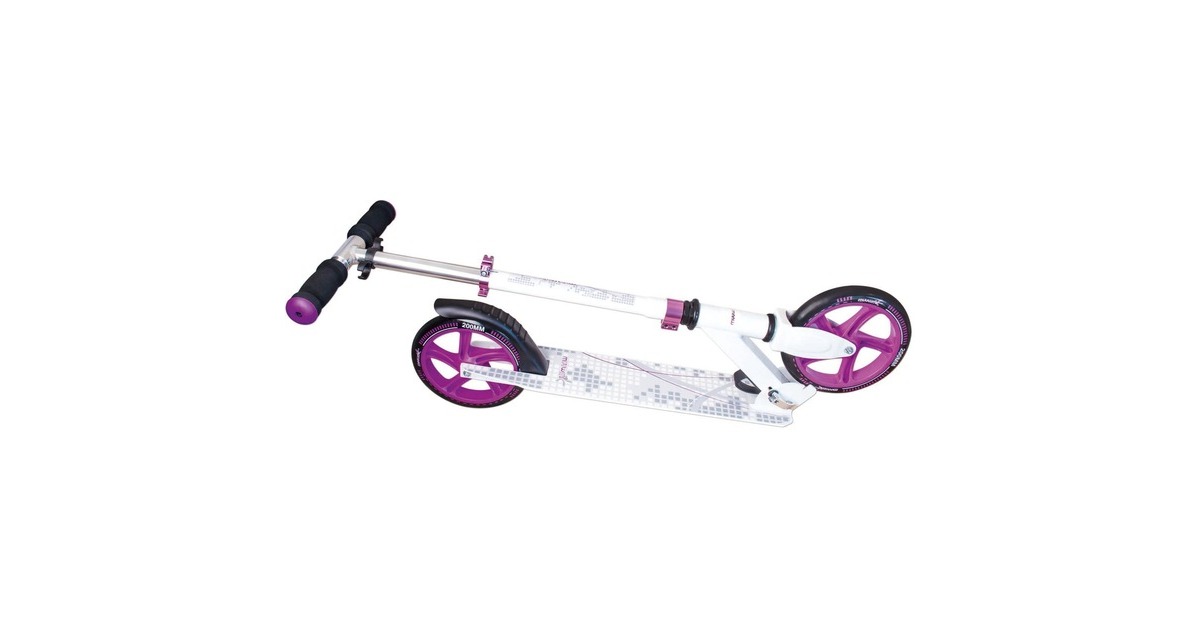 Der Scooter 200 mm besteht aus hochwertigem Aluminium mit einer Tragkraft von 100 kg. Der Lenker kann in der Höhe von 71 - 92 cm eingestellt werden. Das XL-Deck hat die Maße von 55 x 11 cm. Der Scooter ist mit 200 mm PU Rollen 82 A, ABEC 5 Kugellagern und einem Anti-Slip Bremspedal ausgestattet. Dank einem einfachen Mechanismus kann der Scooter bequem zusammen geklappt werden.Art.-Nr.: 1586903