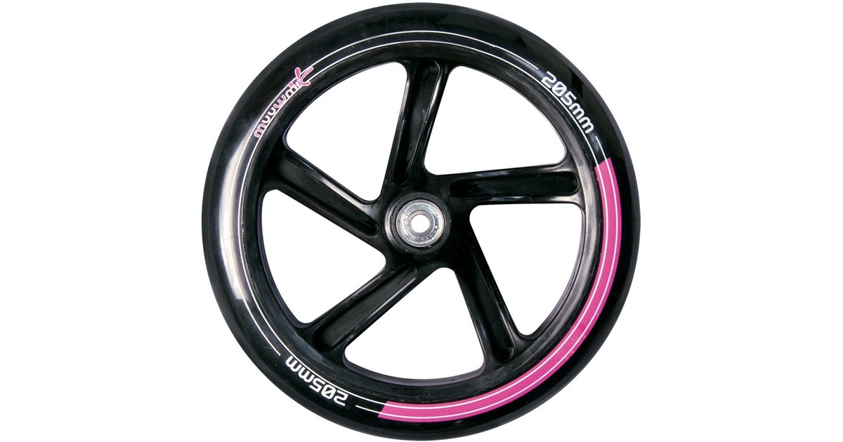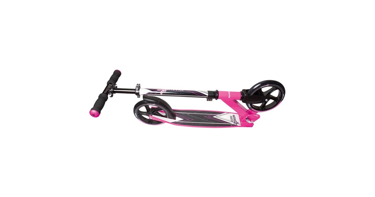 Der Scooter 205 mm besteht aus hochwertigem Aluminium mit verstärkter Vorderradgabel hat eine Tragkraft von 100 kg. Der Lenker kann in der Höhe von 77 - 97 cm eingestellt werden. Das tiefer gelegte XL-Deck hat die Maße von 58 x 12 cm. Der Scooter ist mit 205 mm PU Rollen 82 A, ABEC 7 Kugellagern und einem Anti-Slip Bremspedal mit gestanztem Logo und Ständer ausgestattet. Durch einen optimierten Mechanismus kann der Scooter bequem zusammen geklappt werden.