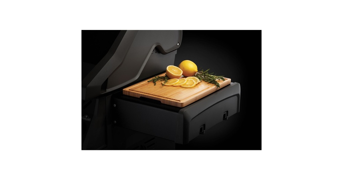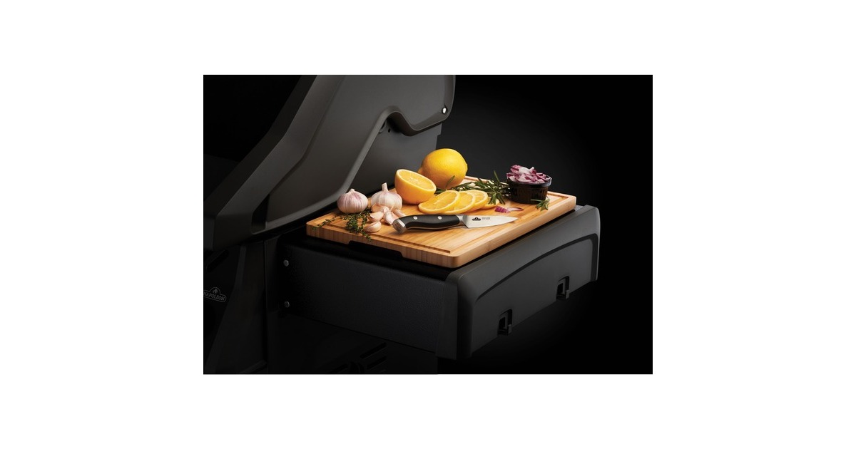Das aus Bambus hergestellte Schneidebrett 70113 von Napoleon passt genau auf die Seitenablagen der Napoleon Rogue- und Rogue XT-Grills und ermöglicht die Zubereitung direkt am Grill. Es kann auch als stilvolles Serviertablett verwendet werden, und es ist langlebig genug zur täglichen Benutzung. Die Silikonfüße sorgen für Stabilität und schützen die Arbeitsflächen und Seitenablagen. Dank der ergonomischen Griffe unter den schmalen Seiten ist die Handhabung ganz einfach. In der Rille lassen sich Fleischsäfte für Soßen auffangen. Es ist einfach zu pflegen, am besten bei Bedarf von Hand abwaschen und nicht eintauchen.Art.-Nr.: 1680448