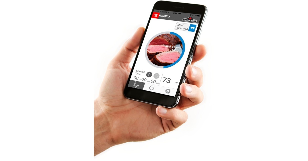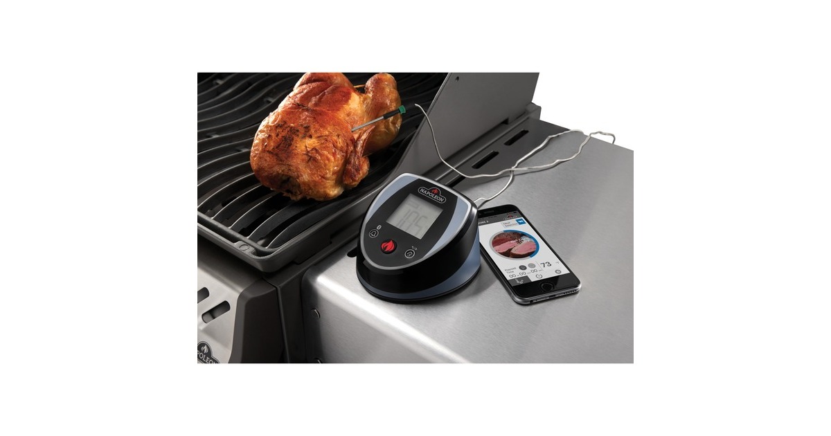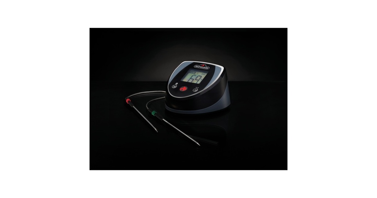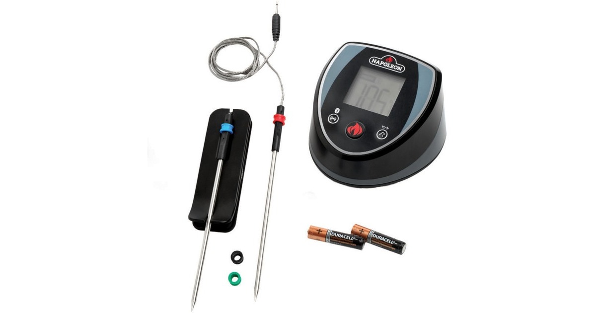 Das Bluetooth Thermometer von Napoleon misst mit 2 Temperatursonden die Kerntemperatur sowie Garraumtemperatur, so dass man stets bequem und einfach evtl. Temperaturschwankungen erkennen und ausgleichen kann. Praktischerweise können die Messwerte entweder direkt am Thermometer auf einem großzügigen Display abgelesen werden oder komfortabel auf dem Smartphone mit Hilfe der ACCU-PROBE App (Apple OS und Android) angezeigt werden. Praktische Annehmlichkeiten wie beispielsweise vorprogrammierte Temperatureinstellungen oder die Möglichkeit die Werte individuell anzupassen, lassen das Thermometer zu einem unverzichtbaren Helfer am Grill werden. Das Grillthermometer besitzt eine magnetische Halterung um es sicher am Grill fixieren zu können. Art.-Nr.: 1404752