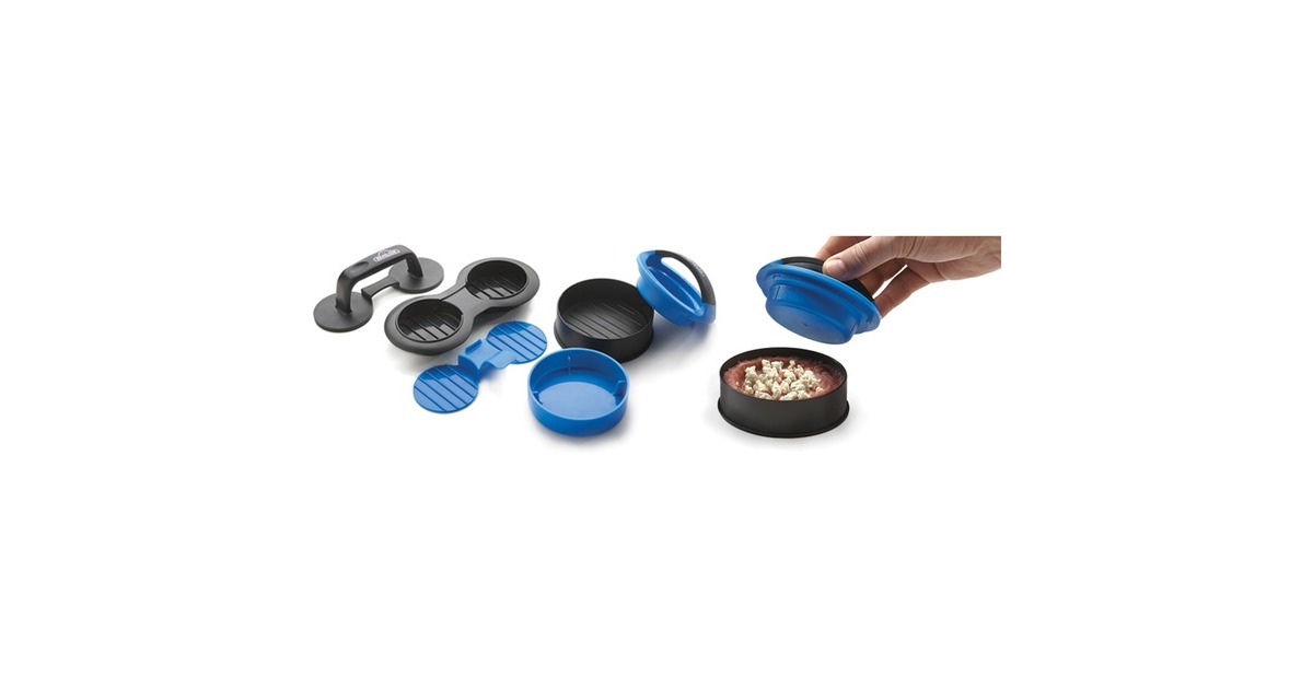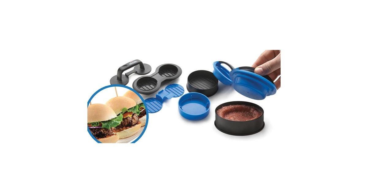 Mit dem neuen 3-in-1 Burgerpresse-Set 70060 gelingen klassische Burger, Mini-Burger und gefüllte Burger im Handumdrehen und sehen noch dazu perfekt aus. Dieses Set ist auch ein perfektes Mitbringsel zur nächsten Grillparty. Art.-Nr.: 1404751