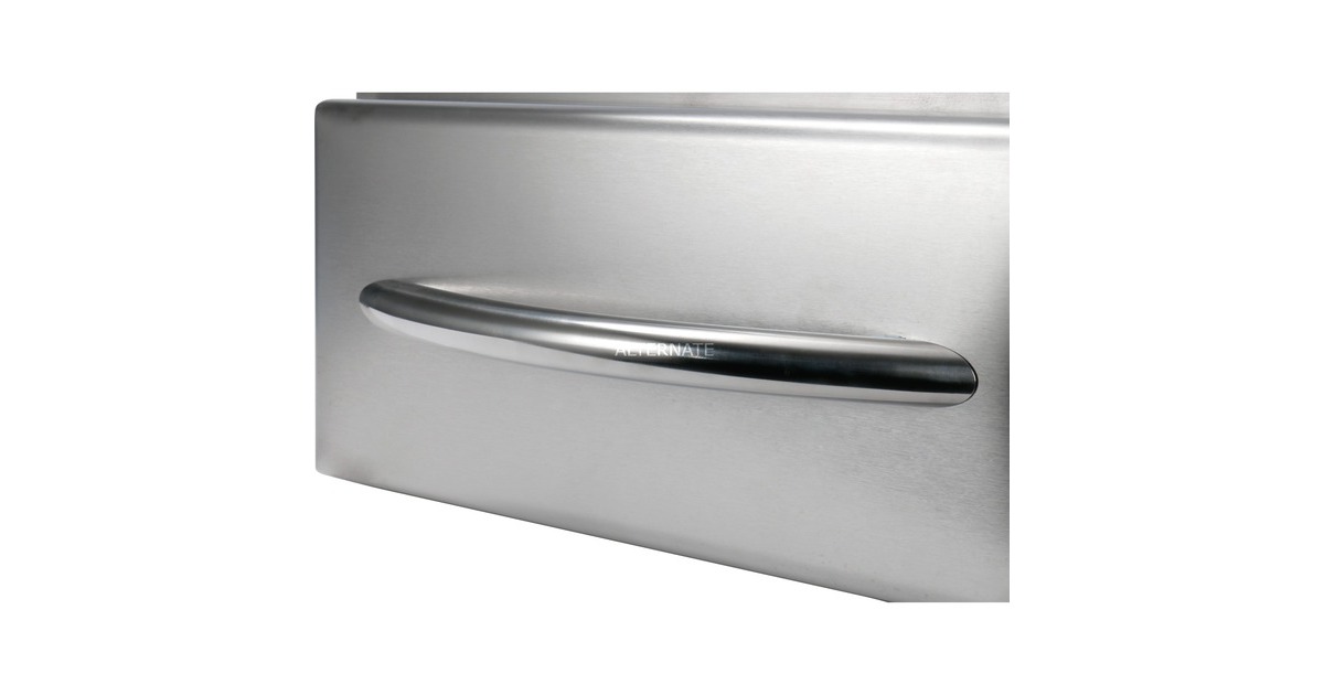 Hochwertige, flache Edelstahl Einbau Schublade in gewohnter Napoleon Qualität mit gewölbtem Edelstahl-Griff. Art.-Nr.: 1404393| Bereich | Outdoor-Küche |