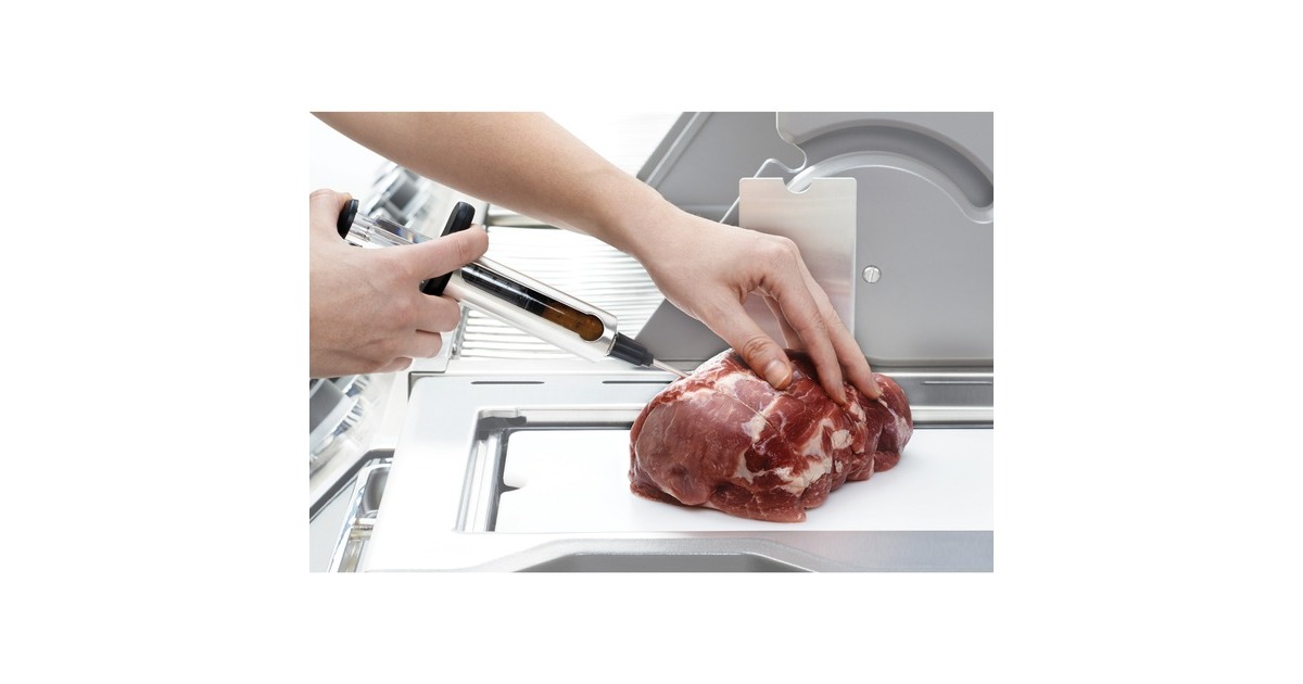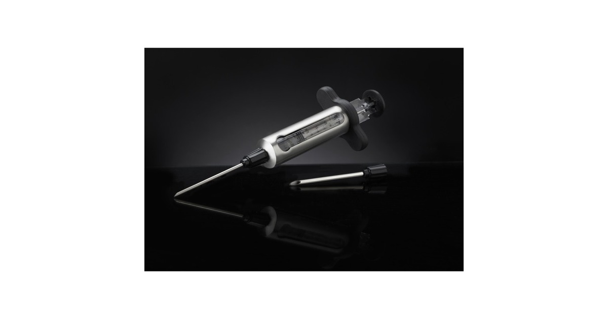 Mit dem Napoleon Marinaden-Injektor 55028 aus Edelstahl gelingt das Grillgut geschmackvoller und saftiger. Das Gehäuse ist aus hochwertigem Edelstahl gefertigt und verfügt über ein praktisches Sichtfenster. Unzen und Teelöffel werden als Einheit angeführt und ermöglichen eine rezeptgetreue Zubereitung. Je nach der verwendeten Flüssigkeit stehen zwei Injektionsnadeln zur Wahl: Die kleinere Nadel ist perfekt für dünnflüssige Saucen, zerronnene Butter, Wein und Marinaden geeignet. Die dickere Nadel ist perfekt für Marinaden mit Kleingehacktem, wie Knoblauch oder Kräutern, geeignet. Dank der Reinigungsbürste lässt sich der Marinaden-Injektor einfach und hygienisch säubern. In der ebenfalls enthaltenen Aufbewahrungsbox findet außerdem alles seinen rechten Platz.Art.-Nr.: 1404512