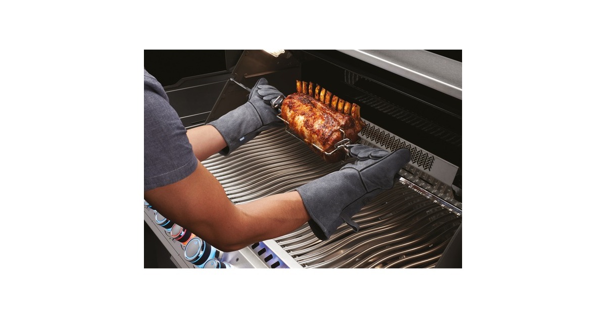 Ob Drehspieß oder Gussplatte, dank der Napoleon Echtleder- Grillhandschuhe behält man kühle Finger und das Grillbesteck sicher im Griff. Art.-Nr.: 1496285| Bereich | Grillen |