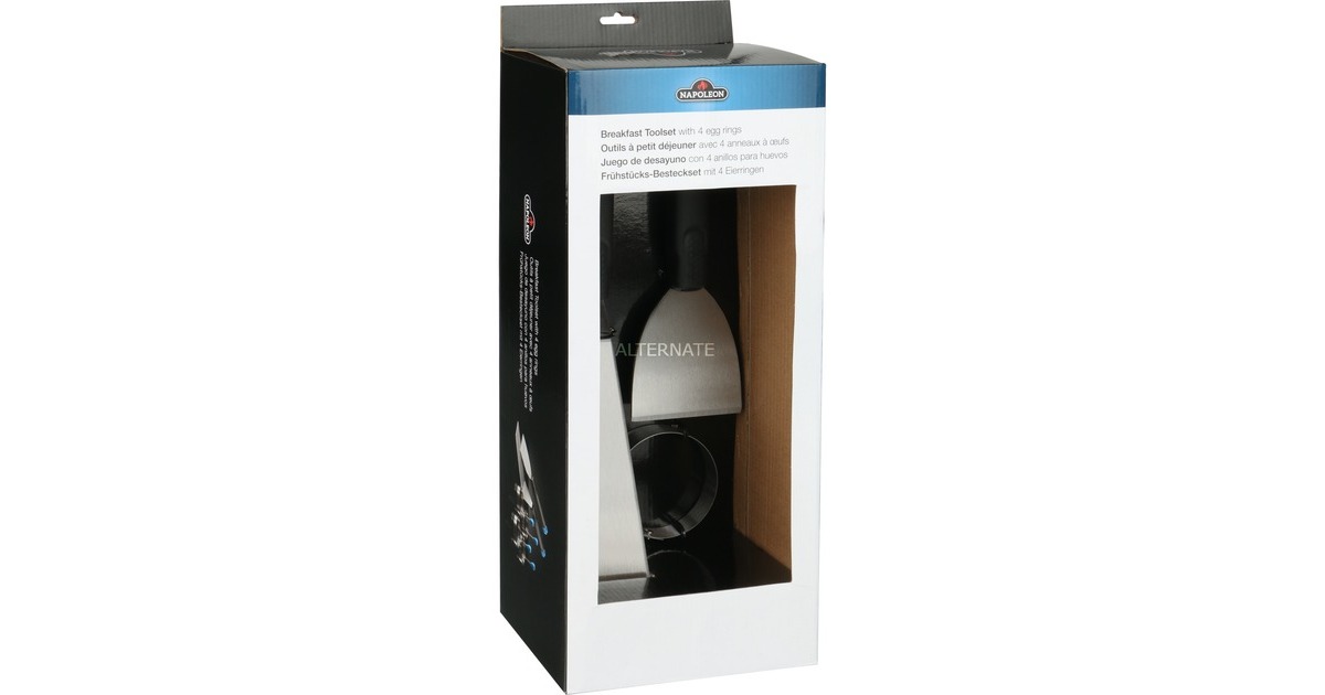 Ein Grill eignet sich nicht nur für herrliche Abendessen, sondern auch zur Zubereitung von Gourmet-Frühstücken. Das Frühstücksset 70055 von Napoleon enthält einen praktischen Grillwender, einen Schaber zum Sauberkratzen von Grillplatten und Planchas und vier Eierringe mit klappbaren Griffen für perfekt runde Spiegeleier.Art.-Nr.: 1591746