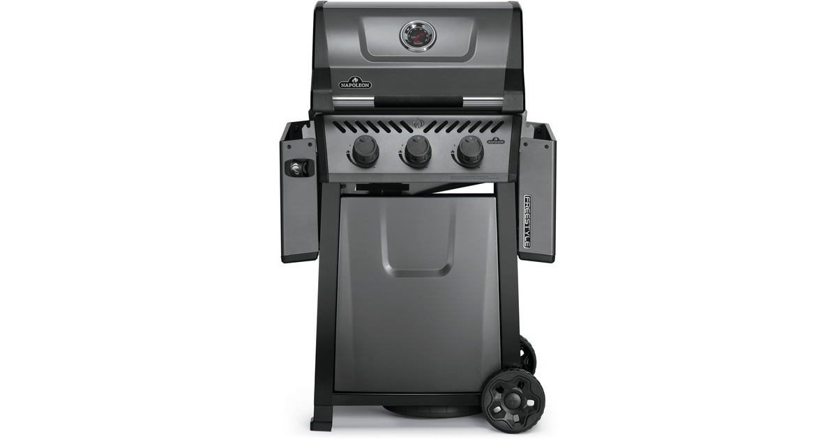 Der Napoleon Freestyle 365 Graphit ist ein kompakter Gasgrill mit erstklassigen Funktionen und unschlagbarem Preis-Leistungsverhältnis. Der Flammenstrahl des JETFIRE Zündsystems zündet die Hauptbrenner schnell, einfach und zuverlässig. Die Iconic Wave-Grillroste aus Gusseisen und die emaillierten Flammenschutzbleche ermöglichen eine gleichmäßige Hitze-Verteilung und ein perfektes Anbraten. Die Porzellanbeschichtung schützt sie dabei vor Rost. Der langlebige Feuerkasten aus Aluminiumguss reflektiert die Hitze des Grills und erzeugt so eine konvektive, backofenähnliche Umgebung und hervorragende Grillergebnisse. Die Temperatur der drei Edelstahlbrenner kann mit den ergonomischen Bedienknöpfen präzise gesteuert und über das integrierte Thermometer einfach kontrolliert werden. Die klassische Edelstahlblende und der Carbonfarbton verleihen dem leicht ablesbaren Thermometer einen stylischen Retrolook. Die schöne Graphit-Porzellanbeschichtung schützt den Deckel vor Abnutzung, Wettereinflüssen und Fingerabdrücken. Der Soft-Touch-Griff mit weicher Oberfläche ist wärmeabweisend und sorgt beim Öffnen und Schließen der Grillhaube für eine angenehme Griffigkeit. Auch die Reinigung des Gasgrills Freestyle 365 Graphit fällt anschließend dank der seitlich zu entnehmenden Fettauffangschale ganz leicht. Mit den beiden robusten Rollen kann der Grill leicht an jeden gewünschten Ort geschoben werden, und der geschlossene Unterschrank schützt die Gasflasche und den Wagen vor Umwelteinflüssen. Mit seinen einfach ausklappbarer Seitenablagen mit Aufhängern für Grillbesteck und einem Flaschenöffner ist der Freestyle für jede Gartenparty umfassend ausgestattet.Art.-Nr.: 1680019