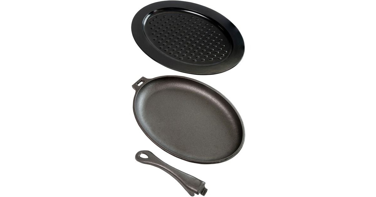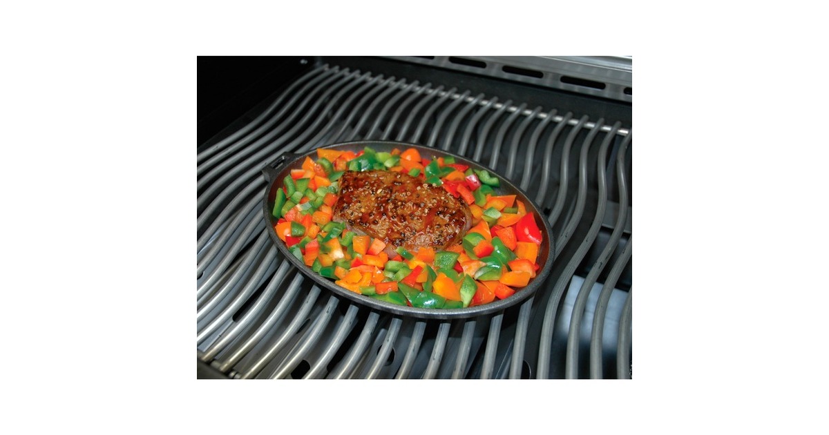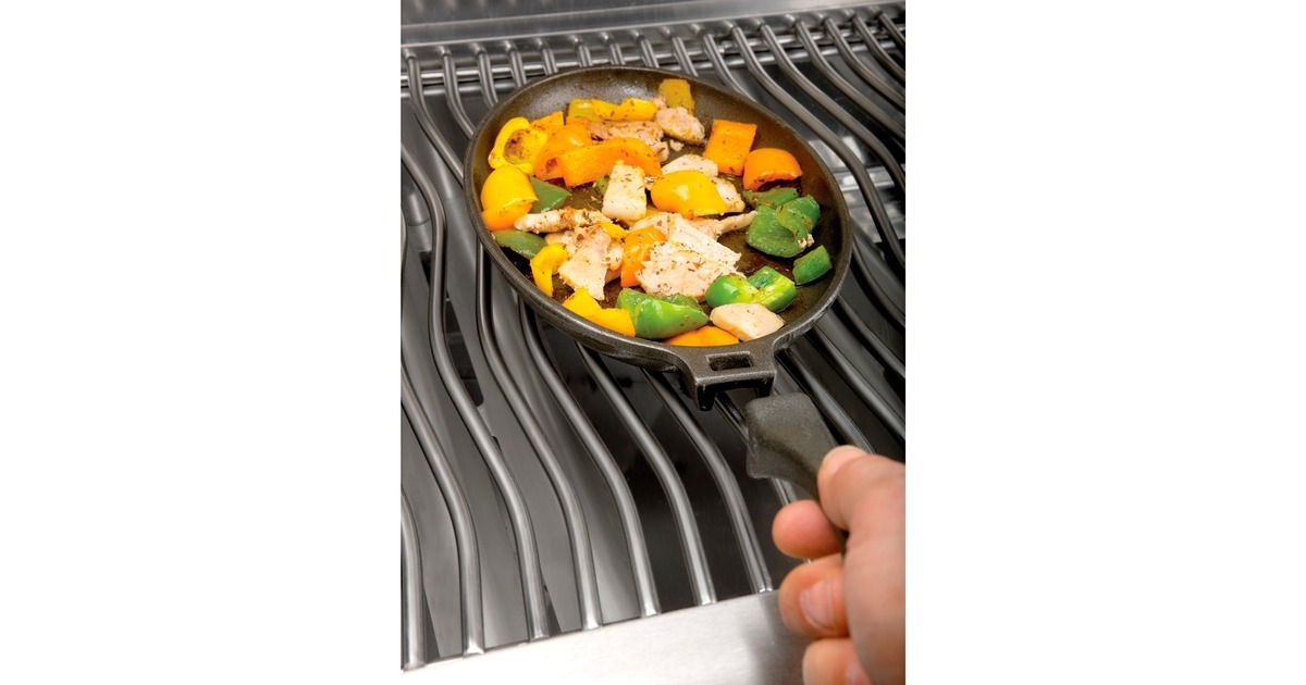 Die Napoleon Gusseisen-Grill- und Bratpfanne 56003 ist das perfekte Modell für Einsteiger und Profis. Ob am Grillrost, am Seitenbrenner oder am Küchenherd, diese Gusseisen-Pfanne macht überall eine perfekte Figur. Während des Grillens oder Bratens wird einfach der Griff ausgehängt. So bleibt dieser schön kühl und das Pfannengericht kann professionell samt Untersetzer serviert werden. Professionell eingebranntes Gusseisen überdauert Generationen. Diese Grillpfanne kann man auch ganz einfach selbst einbrennen: Dazu einfach waschen, mit einer dünnen Schicht pflanzlichen Fetts beschichten und bei ca 180°C in einen eine Stunde vorgeheizten Grill oder Ofen stellen. Dieser Vorgang sorgt für eine nicht-haftende Oberfläche, sodass man jahrelang Freude an der Gusseisen-Pfanne hat. Art.-Nr.: 1404519