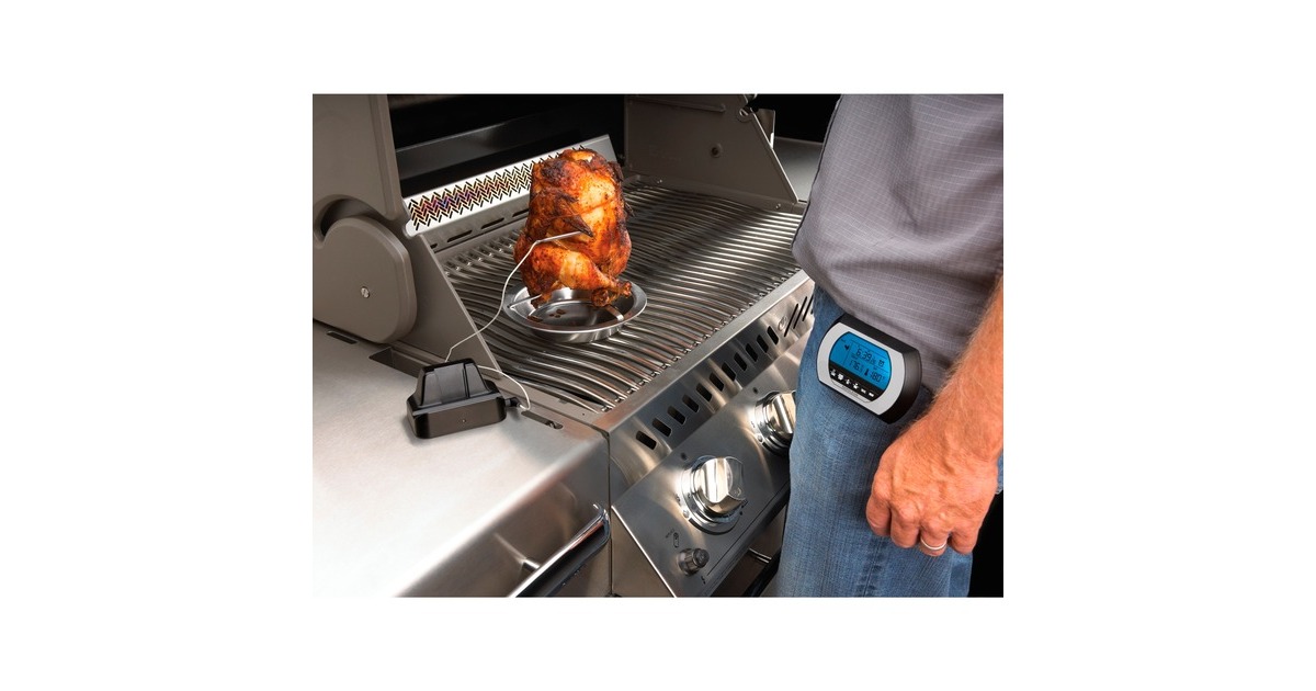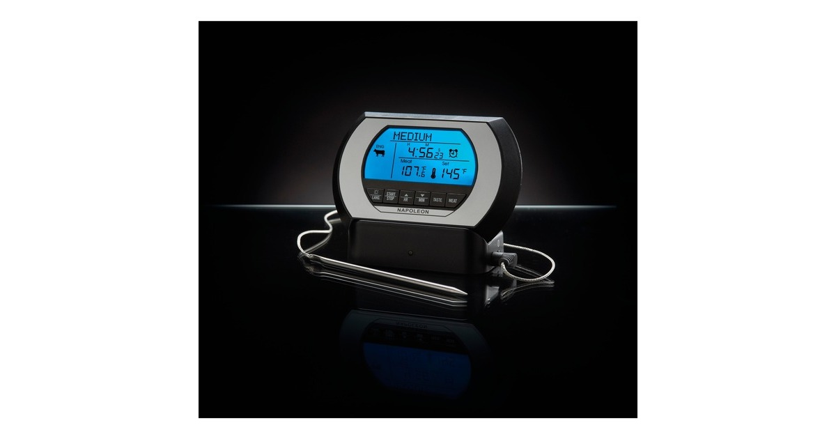 Das drahtlose, digitale Funkthermometer 70006 von Napoleon zeigt die Temperatur exakt an und ermöglicht so ein punktgenaues Garen. Mit bis zu 60 Metern Reichweite und der einfachen Gürtelhalterung lässt sich dabei ganz gemütlich mit dem Nachbarn am Gartenzaun plaudern. Das Funkthermometer besitzt eine mehrsprachige Anzeige und ist magnethaftend, für einen sicheren Halt am Edelstahl- oder Stahl-Grill. Art.-Nr.: 1404593