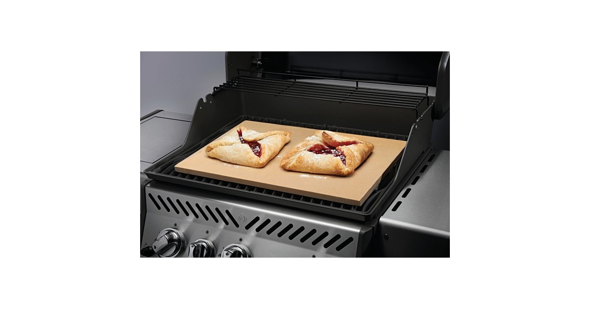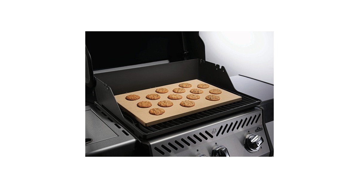 Mit einer eckigen Pizza nutzt man den Platz der Grillfläche oder des Backofens am besten aus. Der Napoleon Pizzastein 70008 passt ideal zur Grillserie Rogue. Dort deckt er Dreiviertel der Grillfläche ab. Natürlich kann man ihn auch in allen anderen Gasgrillmodellen von Napoleon (außer TQ-Serie und Triumph T325) nutzen. Der aus Cordierit gefertigte Pizzastein ist extra porös, sodass die Hitze durchdringen und für einen echten Knusper-Pizzaboden sorgen kann. Doch auch Kekse und andere Desserts gelingen am Pizzastein - einfach auflegen, Grilldeckel schließen und genießen! Der eckige Pizzastein ist 54cm x 34,4cm groß - genügend Platz für jede Menge Pizzagenuss.Art.-Nr.: 1404740