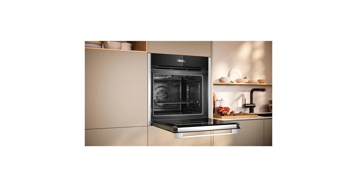 3D-Heißluft (gleichzeitiges Backen auf bis zu drei Ebenen), Soft Close & Soft Opening |