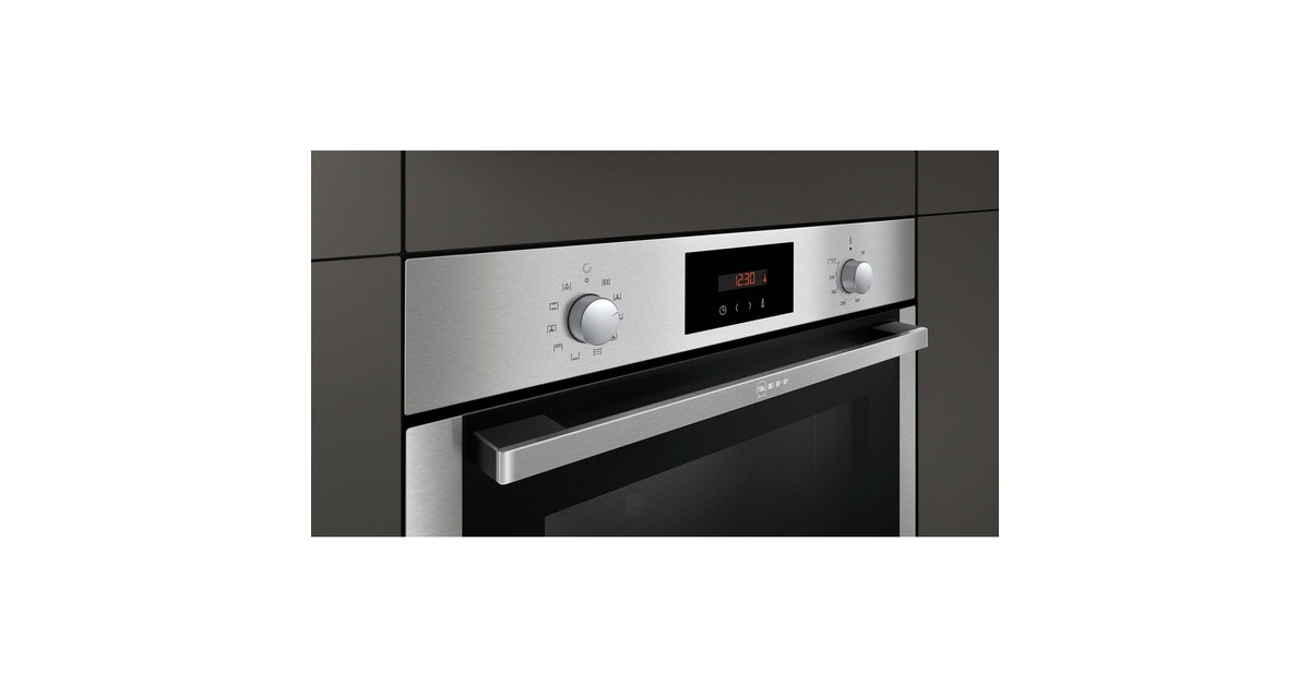 Der Einbaubackofen Neff B2CCG6AN0 (BCB2662) ist mit einem Nutzinhalt von 71 Litern optimal für jede Küche geeignet und lässt sich als Einbaugerät nahezu überall platzieren. Sieben Heizarten lassen sich über die voll versenkbaren Bedienknebel bequem einstellen. Das Heißluftsystem CircoTherm ermöglicht gleichzeitiges Backen, Braten und Garen auf bis zu 3 Ebenen. Die Schnellaufheizung des B2CCG6AN0 sorgt für eine verkürzte Aufheizdauer. Mit Aktivierung der Pyrolyse-Selbstreinigungsfunktion werden Back-, Brat- und Grillrückstände bei hohen Temperaturen zu Asche zersetzt und können einfach mit einem Tuch weggewischt werden. Auch in puncto Sicherheit bleiben beim B2CCG6AN0 mit eingebautem Kühlgebläse, einer individuell einstellbaren Kindersicherung und einer automatischen Sicherheitsabschaltung keine Wünsche offen.Art.-Nr.: 1541287