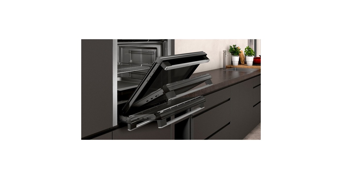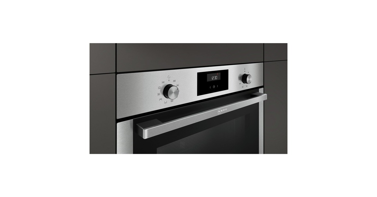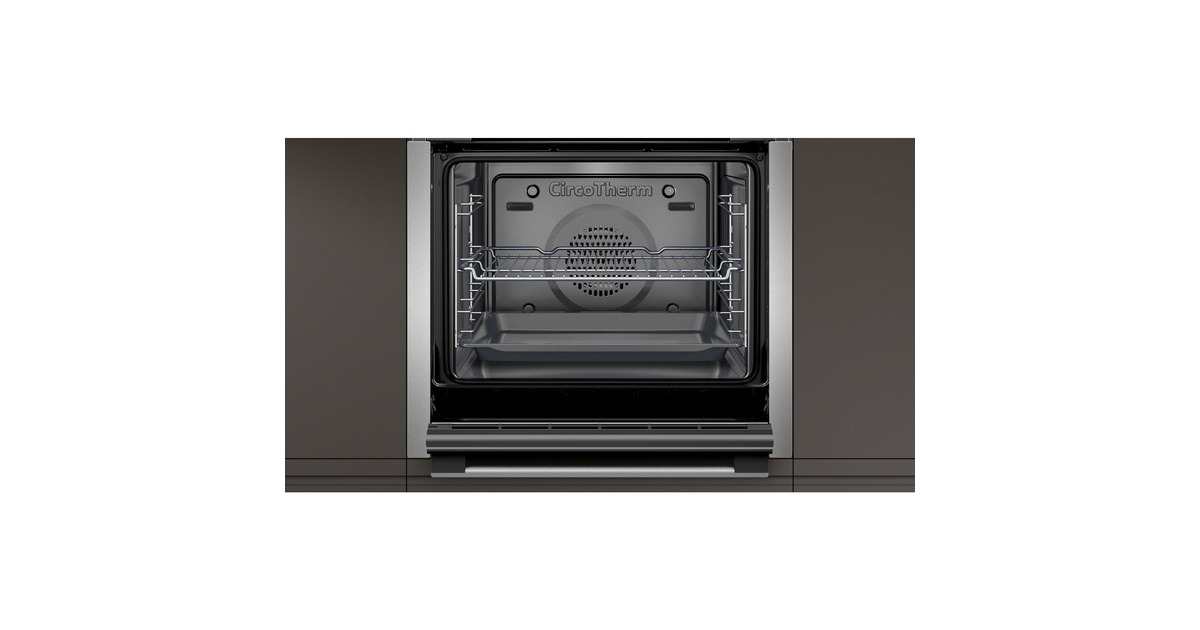 Der Einbaubackofen Neff B3CCE4AN0 ist mit einem Nutzinhalt von 71 Litern optimal für jede Küche geeignet und lässt sich als Einbaugerät nahezu überall platzieren. Sieben Heizarten lassen sich über die voll versenkbaren Bedienknebel bequem einstellen. Das Heißluftsystem CircoTherm ermöglicht gleichzeitiges Backen, Braten und Garen auf bis zu 3 Ebenen. Die Schnellaufheizung des B3CCE4AN0 sorgt für eine verkürzte Aufheizdauer. Die hydrolytische Reinigungshilfe EasyClean sowie die spezielle Ecoclean Beschichtung der Rückwand ermöglichen eine mühelose Reinigung. Auch in puncto Sicherheit bleiben beim B3CCE4AN0 mit eingebautem Kühlgebläse und einer individuell einstellbaren Kindersicherung keine Wünsche offen. Besonderen Komfort bietet die voll versenkbare Backofentür (Hide). Art.-Nr.: 1541280