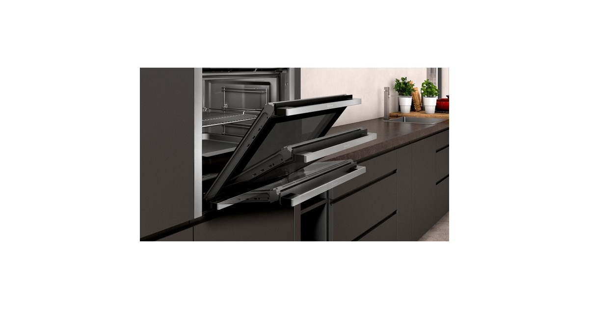 HIDE (voll versenkbare Backofentür), SLIDE-Profilgriff (mitdrehender Türgriff), Edelstahl-Lüfterrad, Backauszug nachrüstbar |