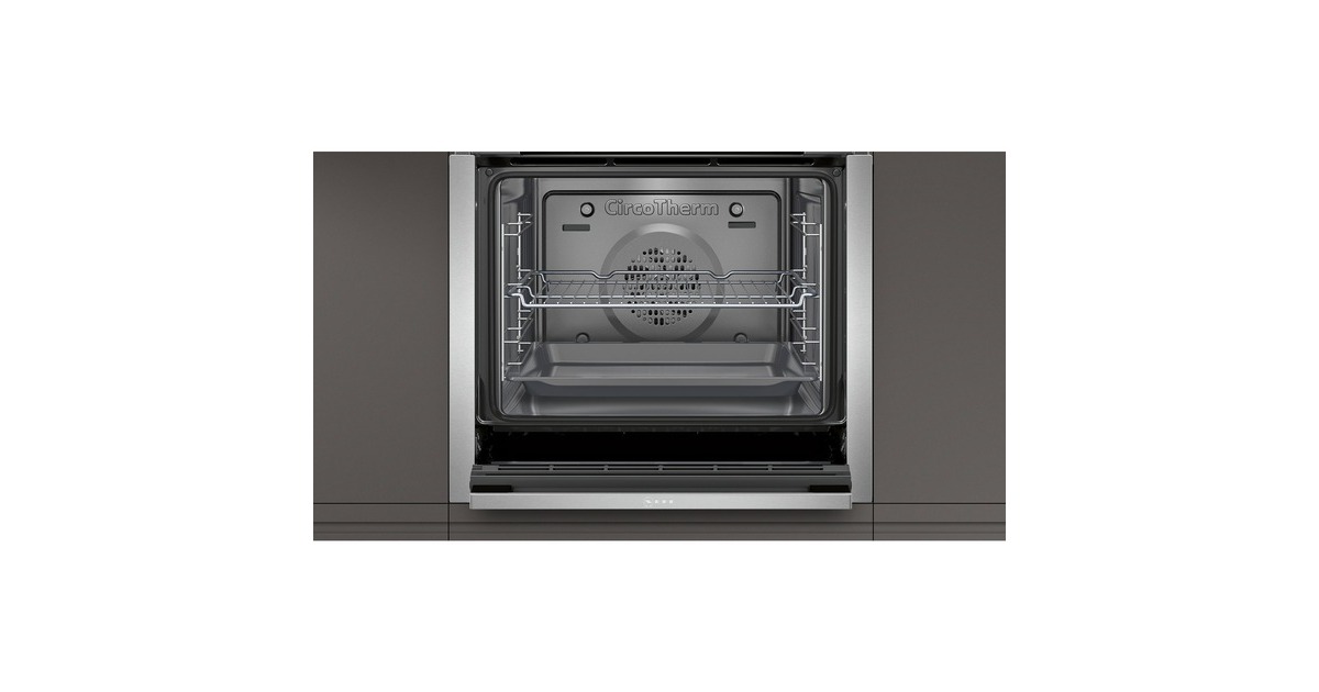Der Backofen Neff B4CCE2AN0 überzeugt mit einem Backraumvolumen von 71 Litern und stellt sieben Heizarten zum Kochen, Backen und Garen zur Verfügung. Das Heißluftsystem CircoTherm sorgt für perfekte Backergebnisse auf bis zu drei Ebenen gleichzeitig dank optimaler Wärmeverteilung und mit der Schnellaufheizung kommt man schneller zur gewünschten Backtemperatur. Die EasyClean Reinigungshilfe ermöglicht eine unkomplizierte und umweltschonende Option für die schnelle Reinigung des Backraumes zwischendurch. Alle Einstellungen lassen sich über das gut lesbare LC-Display und die zwei versenkbaren Drehwähler komfortable vornehmen. Die versenkbare und platzsparende Slide&Hide-Tür verschwindet leichtgängig und geräuschlos in einem Fach unterhalb des Backofens, sodass man seine Kreationen ganz einfach abschmecken oder begießen kann. In puncto Sicherheit überzeugt der B4CCE2AN0 mit einem Kühlgebläse, einer Kindersicherung und einer kühlen Ofenfront.Art.-Nr.: 1869650