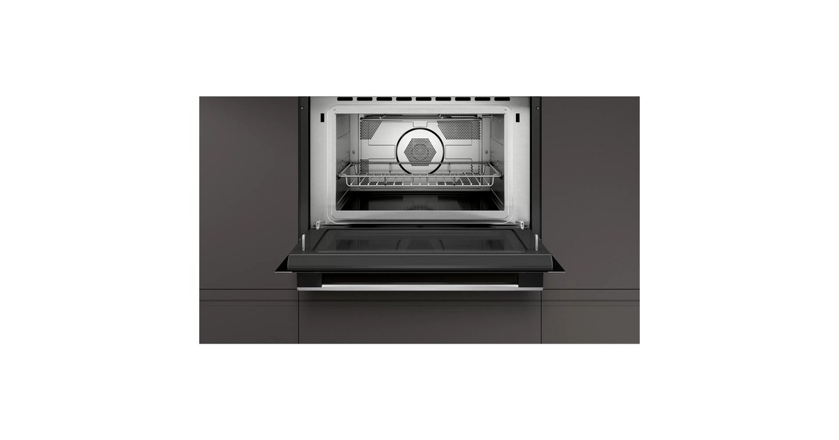 Der Neff Kompaktbackofen C1CMG84N0 mit integrierter Mikrowelle ist ein 45 cm hoher Einbau-Kompaktbackofen mit einem Nutzinhalt von 44 Litern und 900 Watt Leistung. Er verfügt zusätzlich über eine Grillfunktion mit 1750 Watt und die Beheizungsart Heißluft Standard. Die Mikrowelle wird dank Heißluft und optimaler Wärmeverteilung zur feinen Backstation. Fünf Mikrowellen-Leistungsstufen sowie 15 Automatikprogramme lassen sich dank Leicht-Bedien-Konzept besonders einfach einstellen. Der integrierte Grill lässt sich mit den Mikrowellen-Leistungsstufen 90 W, 180 W, 360 W, 600 W kombinieren. Mit mit den Knebeln und Touch-Direktwahltasten gelangt man intuitiv zum passenden Programm. Die Automatikprogramme mit erprobten Einstellungen sorgen für optimales Gelingen. Dank der LED-Innenbeleuchtung hat man optimales Licht, genau wo man es braucht. Der C1CMG84N0 eignet sich zum Einbau in einen Hochschrank.Art.-Nr.: 1674465