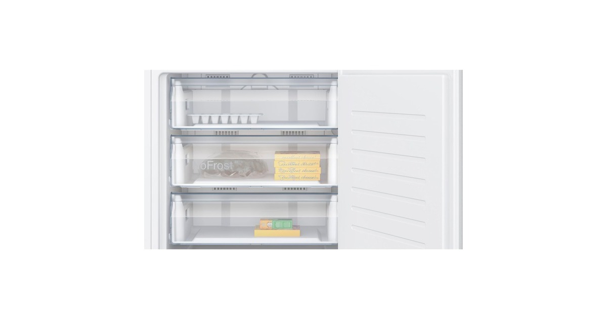 Der Unterbau-Gefrierschrank Neff GU7213DE0 stellt einen Gesamtnutzinhalt von 85 Litern zur Verfügung und lässt sich perfekt in die Küchenzeile integrieren. Ausgestattet ist er mit drei transparenten, pizzagerechten Schubladen zur übersichtlichen Lagerung von Tiefkühlkost. Dank NoFrost-Technologie muss der Innenraum nie wieder mühsam abgetaut werden und die SuperGefrieren-Funktion lässt Lebensmittel schneller durchfrieren, was bereits Tiefgefrorenes beim Einlegen frischer Lebensmittel vor dem Antauen schützt. Über Home Connect lässt sich das Gerät mittels Smartphone oder Tablet aus der Ferne überwachen und steuern. Mit einem Stromverbrauch von 189 kWh im Jahr ist der GU7213DE0 in die Energieeffizienzklasse E eingestuft.Art.-Nr.: 100039919