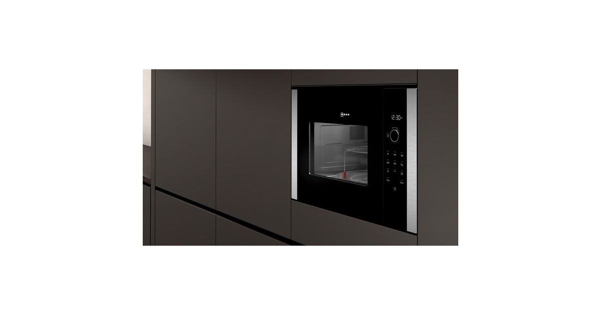 Die Einbau-Mikrowelle Neff HLAGD53N0 - HGB53 überzeugt mit 25 Litern Nutzinhalt, 900 Watt Leistung und einer zusätzlichen Grillfunktion mit 1200 Watt. Fünf Mikrowellen-Leistungsstufen sowie 8 Automatikprogramme lassen sich dank Leicht-Bedien-Konzept besonders einfach einstellen. Der integrierte Grill lässt sich mit den Mikrowellen-Leistungsstufen 90, 180 und 360 Watt kombinieren. Mit den Touch- Direktwahltasten gelangt man intuitiv zum passenden Programm. Die Automatikprogramme mit erprobten Einstellungen sorgen für optimales Gelingen. Die Memory-Funktion erlaubt es, häufige verwendete Programme abzuspeichern, um die Nutzung für den Anwender zu vereinfachen. Dank der LED-Innenbeleuchtung hat man optimales Licht, genau wo man es braucht. Die HGB53 eignet sich zum Einbau in einen 38 cm-Hochschrank. Die sich seitlich öffnende Drehtür ist ideal für den Hocheinbau.Art.-Nr.: 1541404